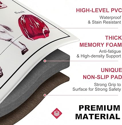 - šćANTI-SLIP & DURABLEćOur rustic non-skid waterproof kitchen mats and rugs is made of high quality PVC material to ensure that they do not wear out easily even after long time use. The surface has textured pattern, which enhances the anti-skid function, and the ultra anti-slip backing provide safe for your family and protect your kitchen floor.
