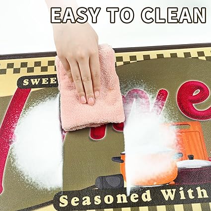 - š„©ćEASY TO CLEANćOur kitchen mats sets 2 piece are easily cleaned. Waterproof and stain-resistant features make cleaning a breeze, just wipe with a damp cloth or handheld vacuum cleaner. Make sure the floor is clean and dry before use.
