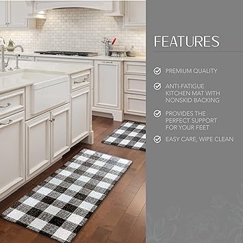 - COUNTRY KITCHEN-SINK MAT: Add some cute farmhouse charm to your kitchen decor with our Farmhouse Living buffalo-plaid anti-fatigue comfort mat. Each buffalo check/square measures 3"x3".