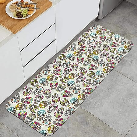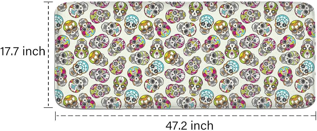 Farting Colorful Mexican Sugar Skull Kitchen Mat Comfort Rugs Non-Slip Kitchen Rug