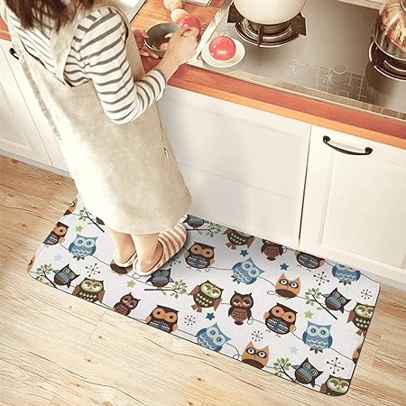 - Microfiber surface + sponge intermediate layer + non-slip PVC bottom. Mats are waterproof and moisture resistant. The kitchen rug absorbs water and dries quickly, protect your kitchen floor from stains and warm your feet from cold floor.