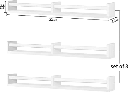- 【Easy to assemble and install】 The dimensions of the floating bookshelves are: 16 1/2 inch*4 inch*3 4/5 inch,set of 2 nursery bookshelves are included in the box, and all necessary hardware and operating instructions, just follow the instructions Do it and your will be assembled and installed in minutes!