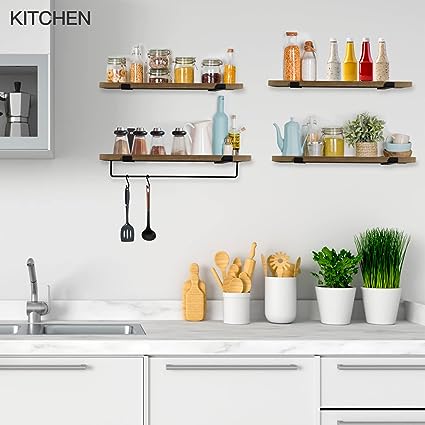 Floating Shelves for Bedroom, Bathroom, 2 Hooks Set of 4