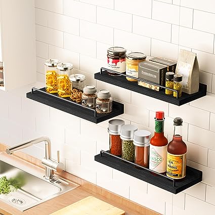 - 【EASY TO INSTALL】 - Bathroom shelves come with step-by-step illustrated instructions and all fittings, including 3 shelf boards, 3 metal guardrails, and hardware. It only takes a few minutes to follow the instructions and complete the mounting, then you can organize your storage space for the walls.