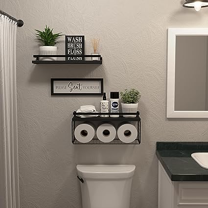 - 【Extra Bathroom Décor Sign】- These floating shelves come with a "PLEASE Seat YOURSELF" sign, which makes the fabulous addition to your family bathroom- It reminds any one who uses this bathroom of good manners. The black lettering on a white background make this sign minimalist chic while the natural wood frame adds a touch of warmth- which gives your space a modern farmhouse feel. The two different fonts also add visual interest, making this piece art and a helpful sign all in one!