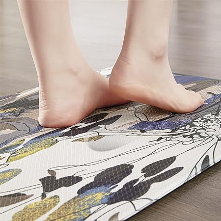 - -- Cushioned Anti Fatigue Kitchen Mat -- Estmy kitchen floor mat are made from superior pvc materials which is thick up to 04 inch (10mm). Slow rebound characteristics is sure to provide comfort and help relieve pressure on your feet, knees, lower back, and joints. It is a good option for anyone who spends a significant amount of time standing in front of their kitchen sink or counter.