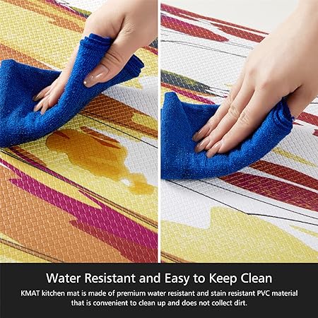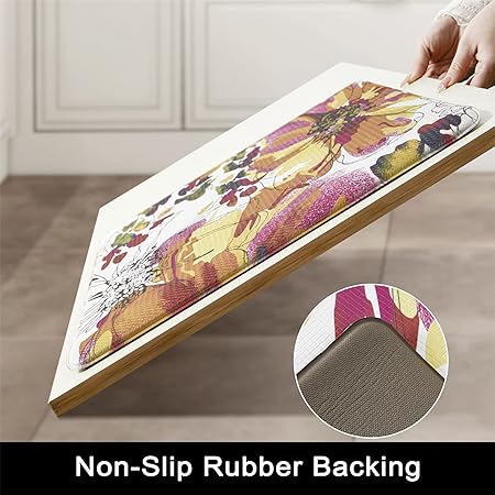 - -- Non Slip Kitchen Rugs -- The unique non-slip texture design on the surface and the bottom of the kitchen sink mat offers strong skid resistance to prevent shifting or slipping. Please note that the colorful kitchen mat must be placed only on a dry floor to avoid slippage!