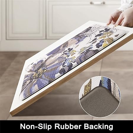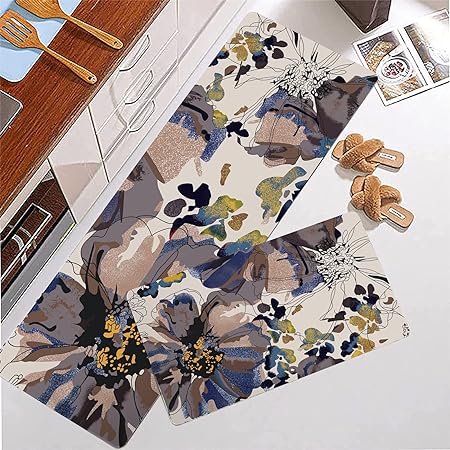 - -- Stain Resistant Easy to Clean -- Estmy flowers kitchen floor mat are designed stain resstant, repels water, liquids, oils or stains and if anything spills. Which means a super easy daily maintainance, just wipe the kitchen padded mat with a damp cloth or rinse with water and they will shine as new in a matter of seconds. Please don’t put it in a washer.