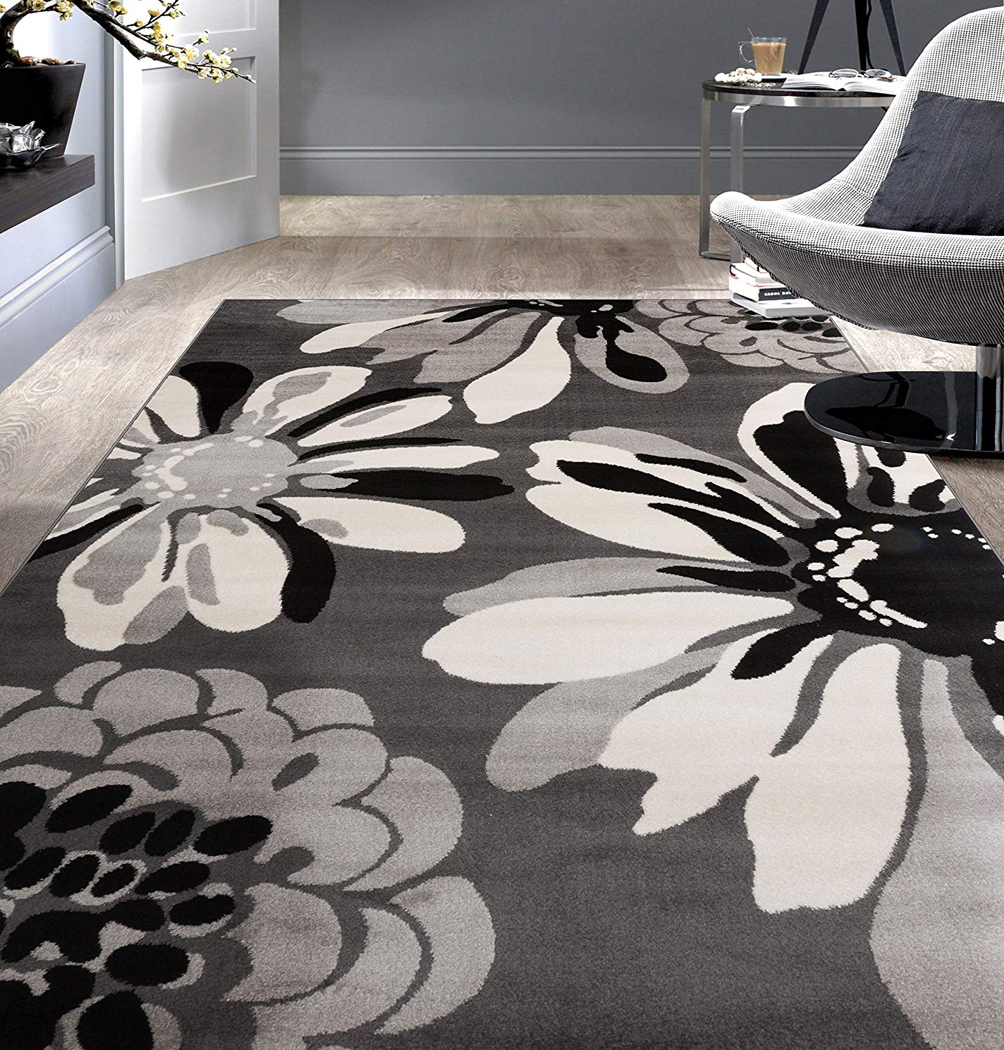 Floral Gray Soft Area Rug