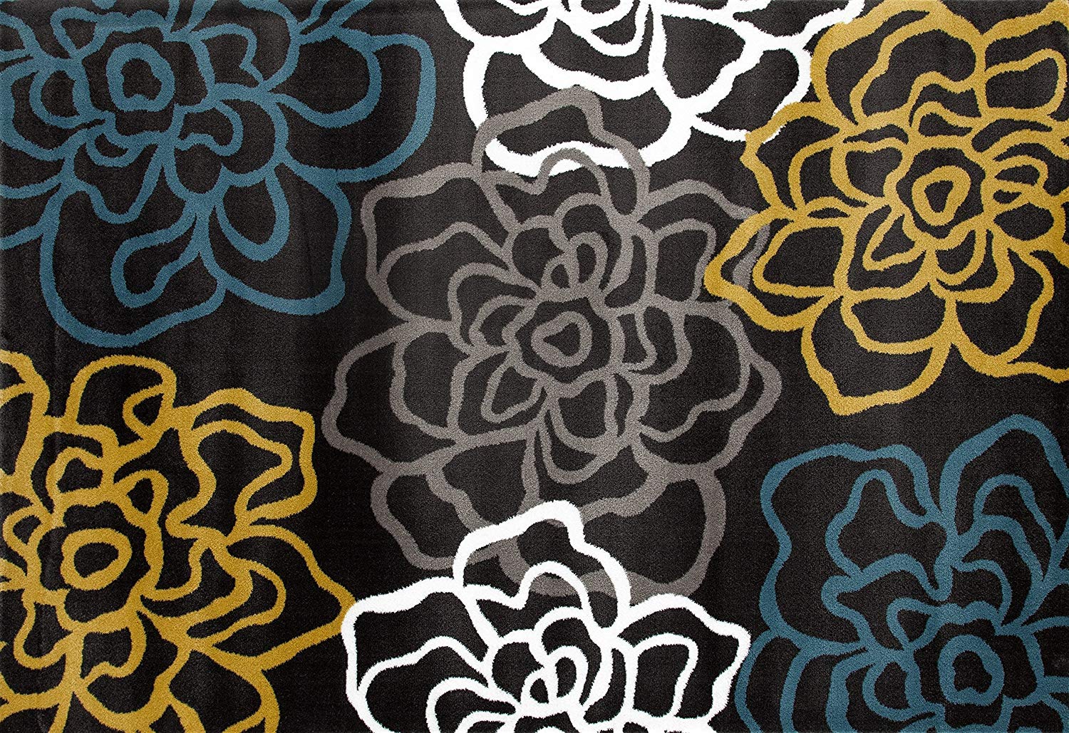 Floral Gray/Grey Yellow Blue Area Rug