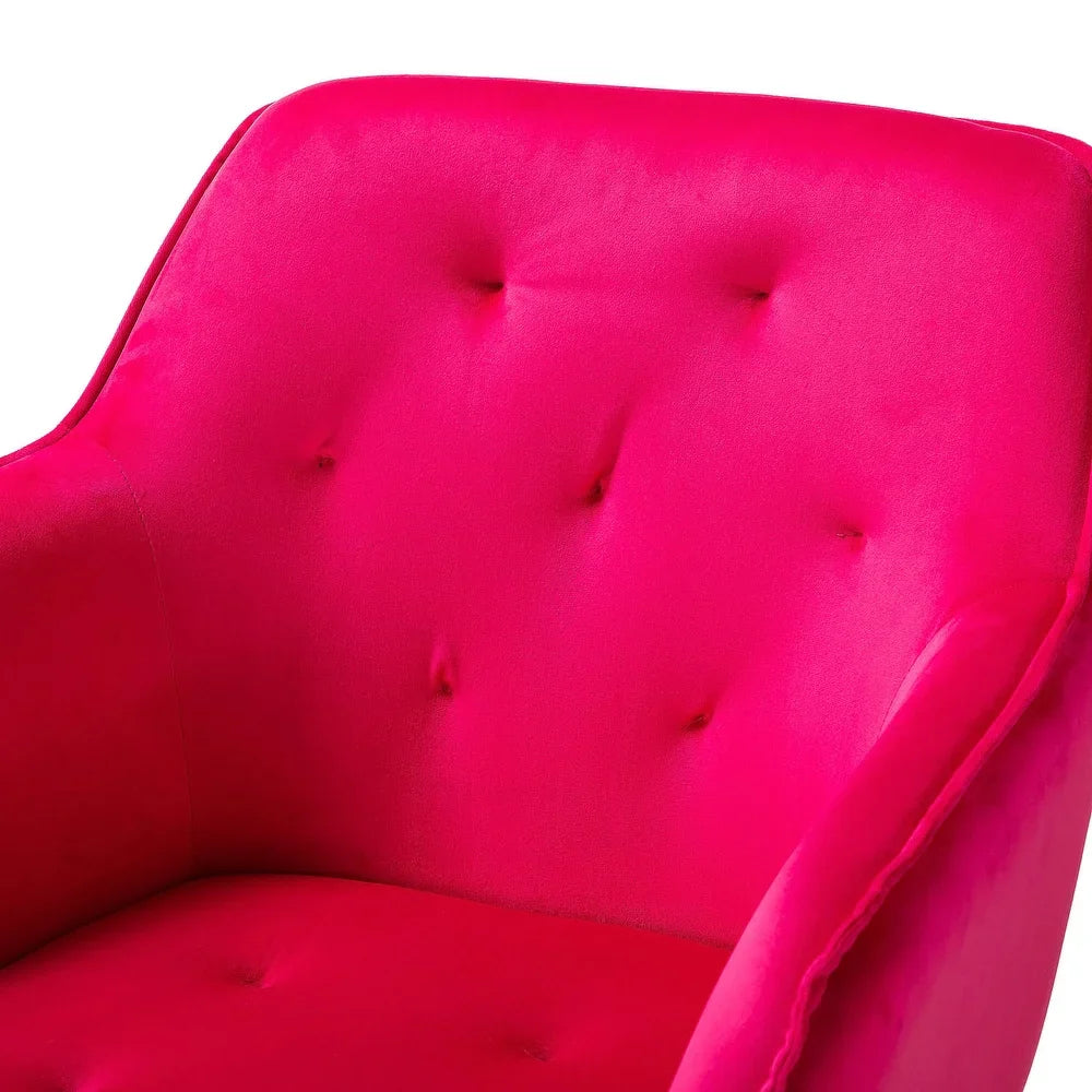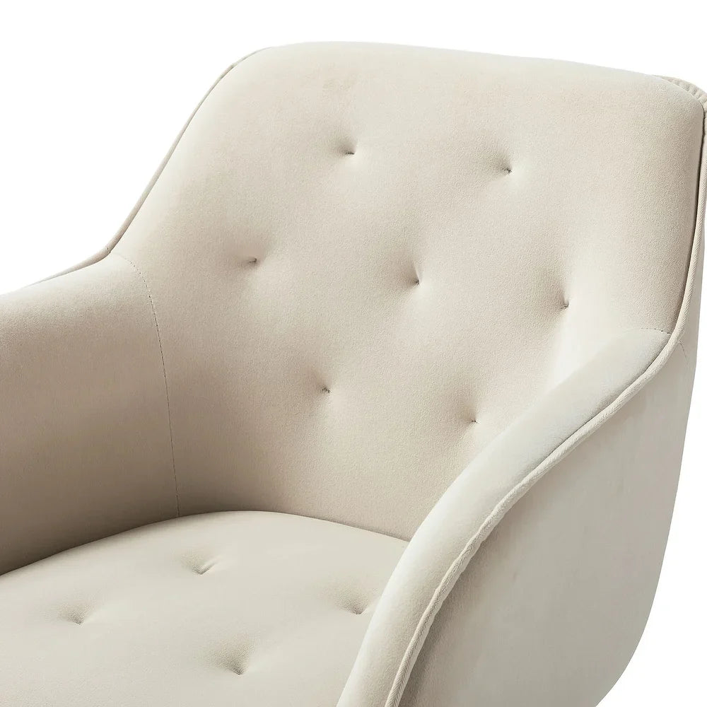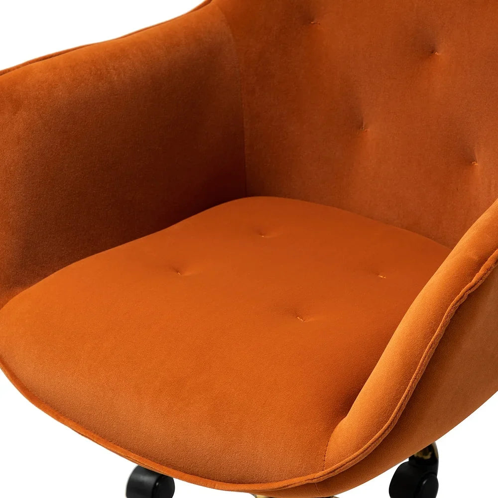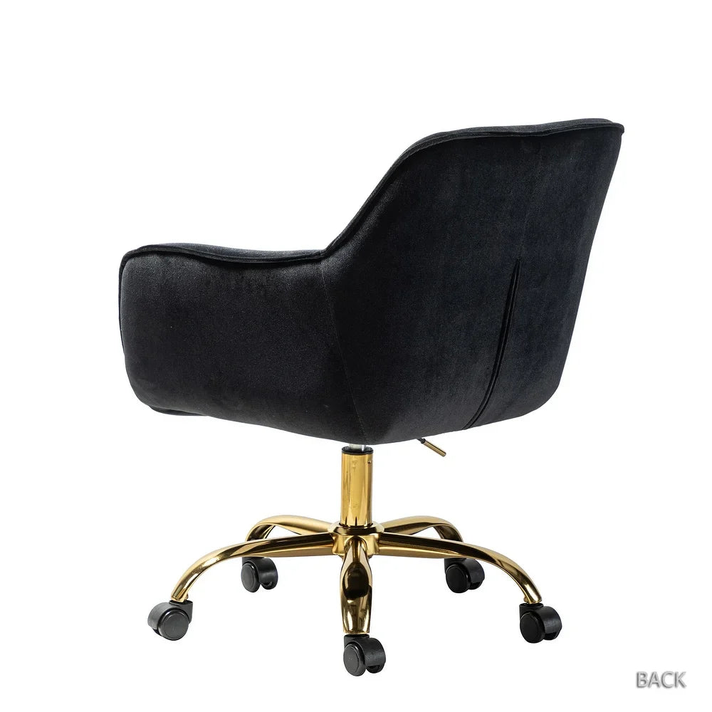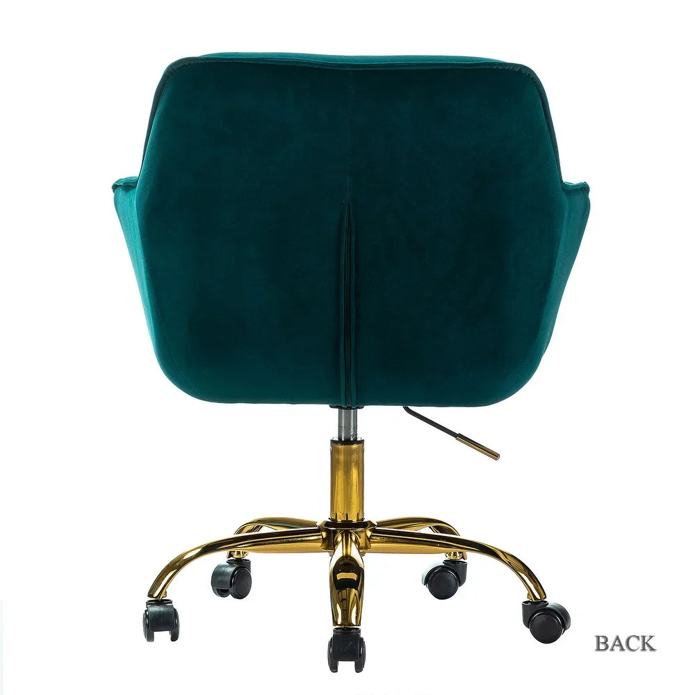 Upgrade your workspace with this contemporary Galera Swivel Task Chair. The chic design and variety of vibrant colors complement any taste, making it perfect for any office or home office. The mid-backrest and integrated arms are tailored with tufting and piped edges, while high-density foam provides comfort and support. The chair's sturdy golden metal legs and 360-degree wheels make it easy to move around the room, and it is also height-adjustable to fit your professional needs. This cute computer chair is ideal for any casual or professional working area.
