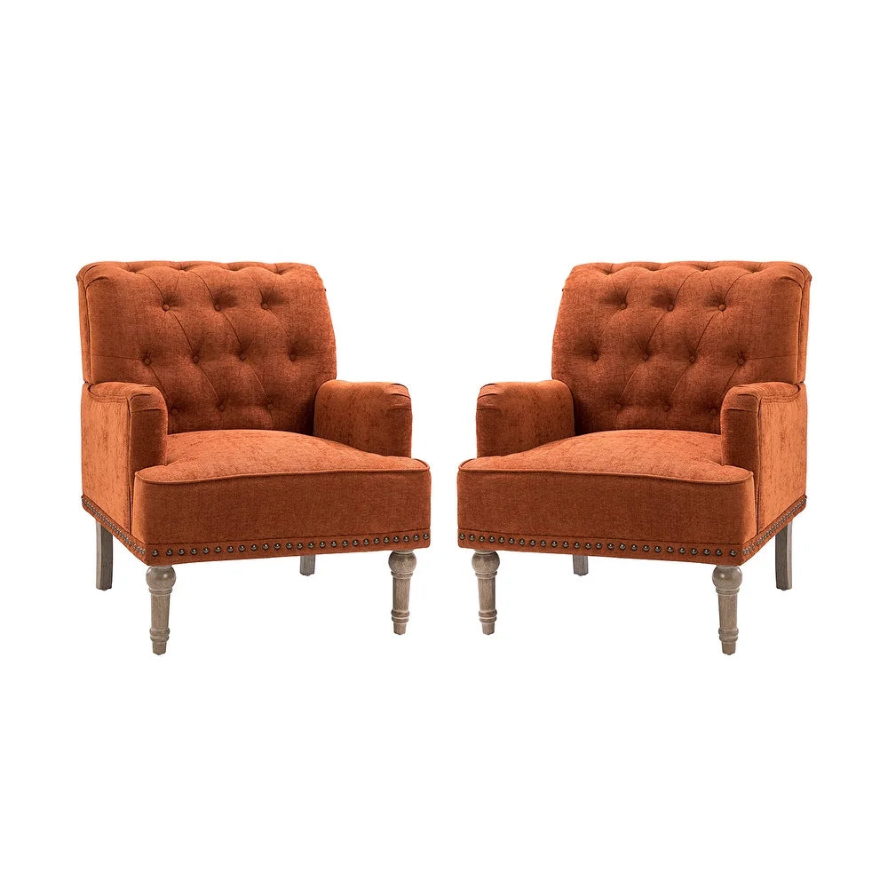Geltrude Traditional Upholstered Accent Chair with Button Tufted Back Set of 2