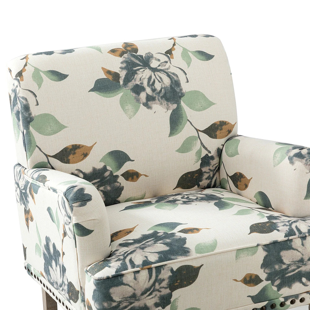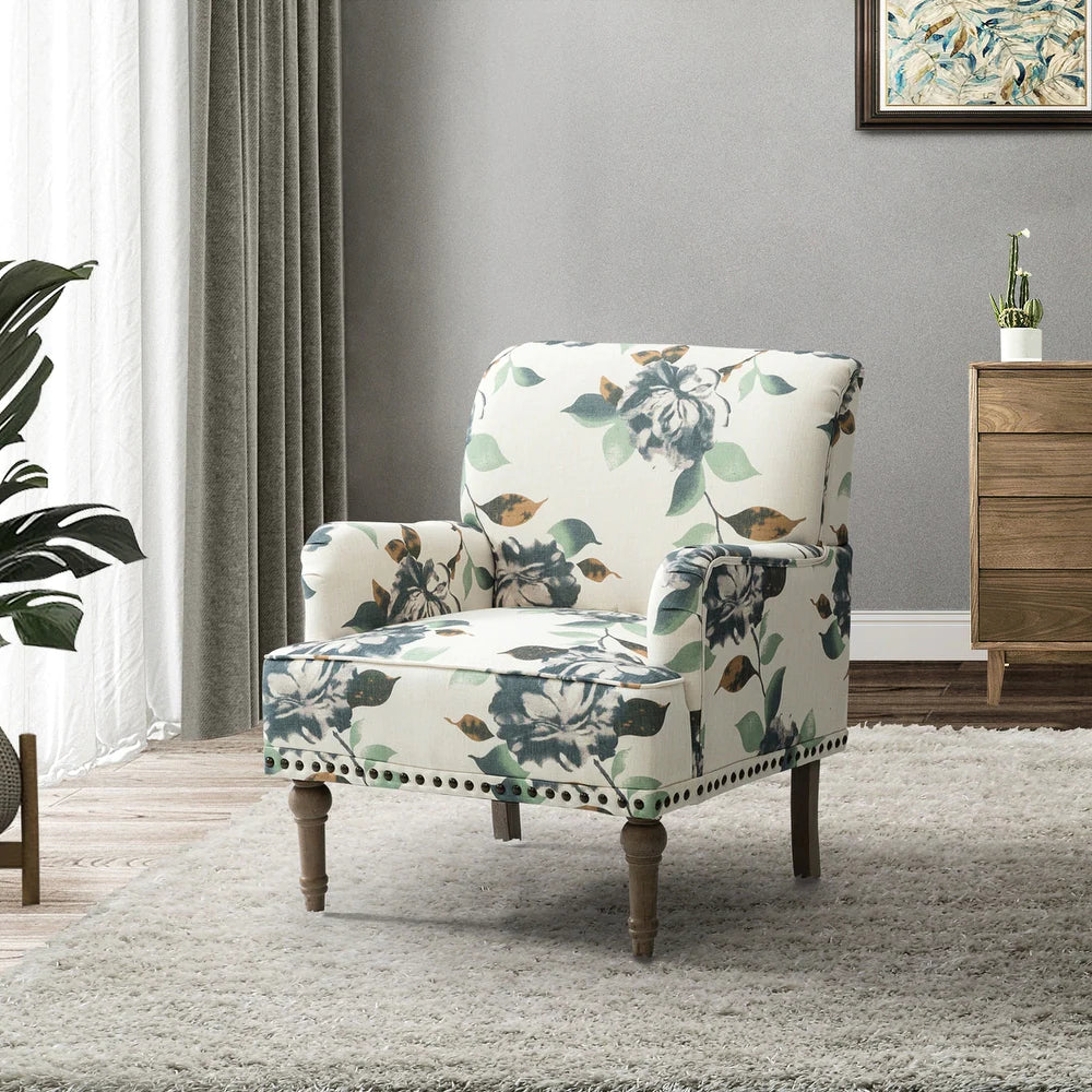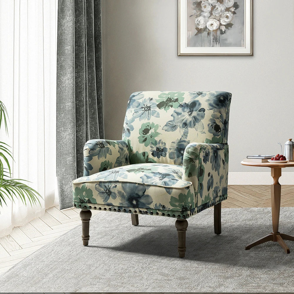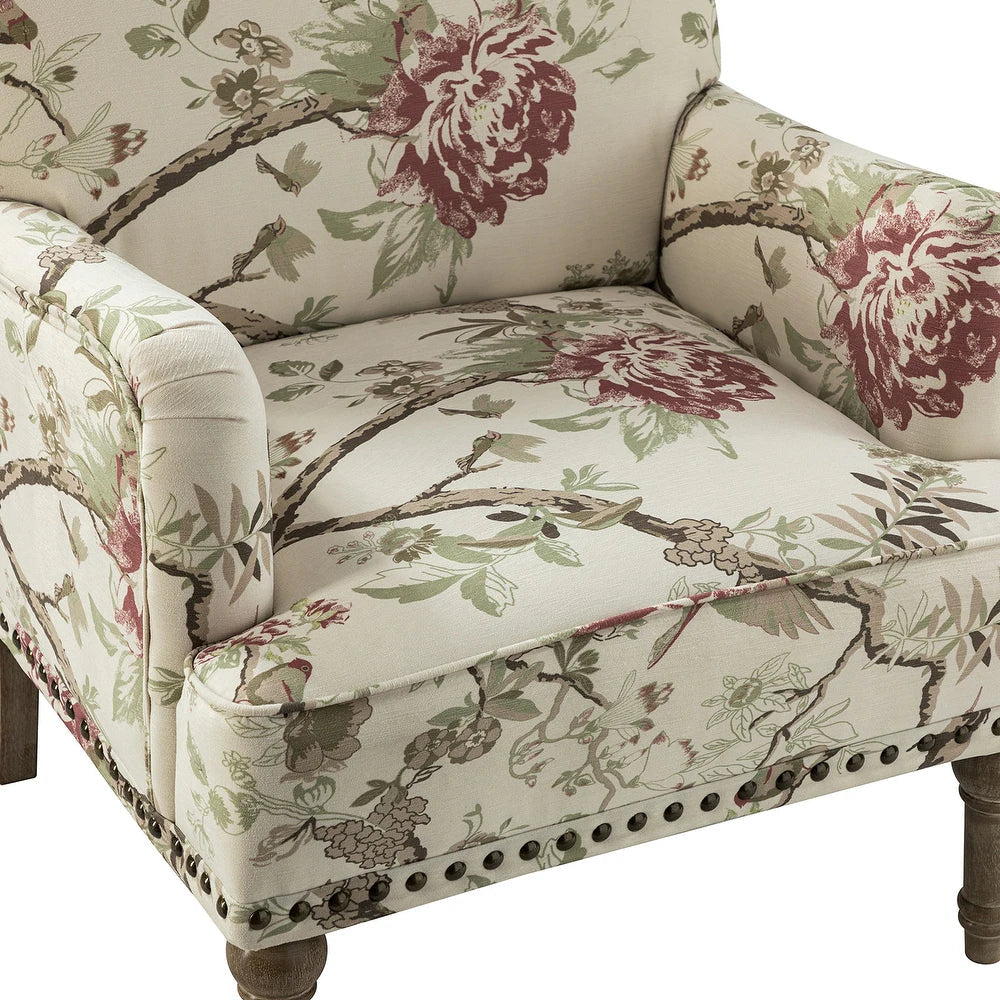 Geltrude Traditonal Floral Fabric Design Upholstered Accent Armchair with Turned Legs