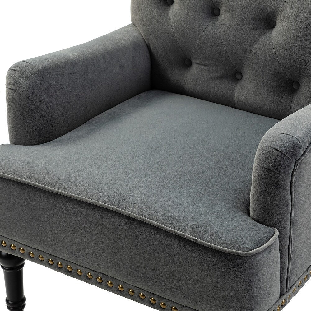 - Streamlined accent chair with stylish nailhead trim and tufted design suitable for living room, office, or bedroom use