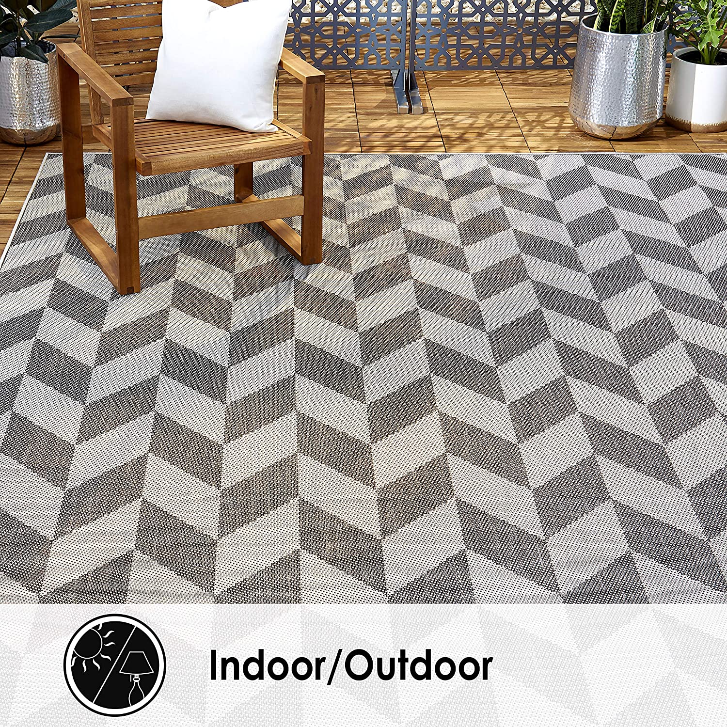Geometric Black Grey Indoor/Outdoor Area Rug - UV/Weather Resistant