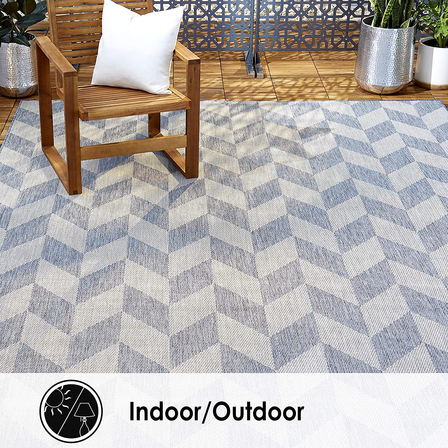 Geometric Blue Grey Indoor/Outdoor Area Rug - UV/Weather Resistant
