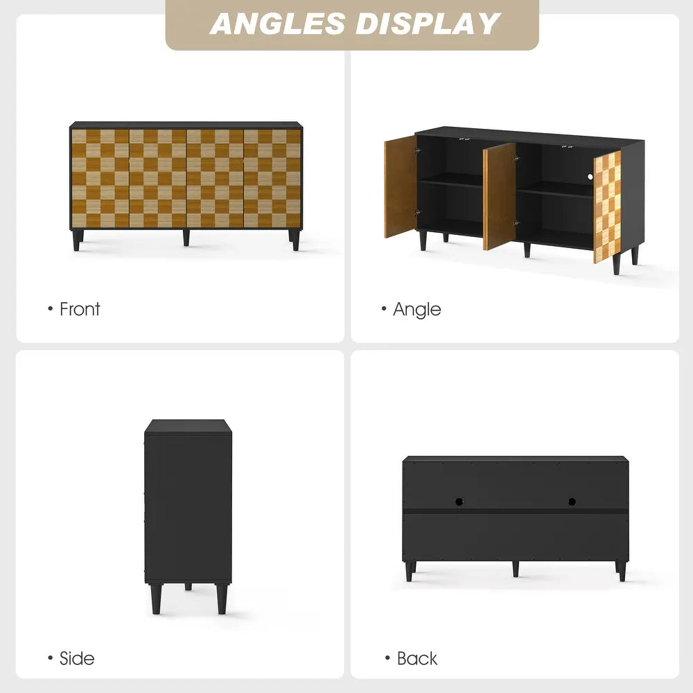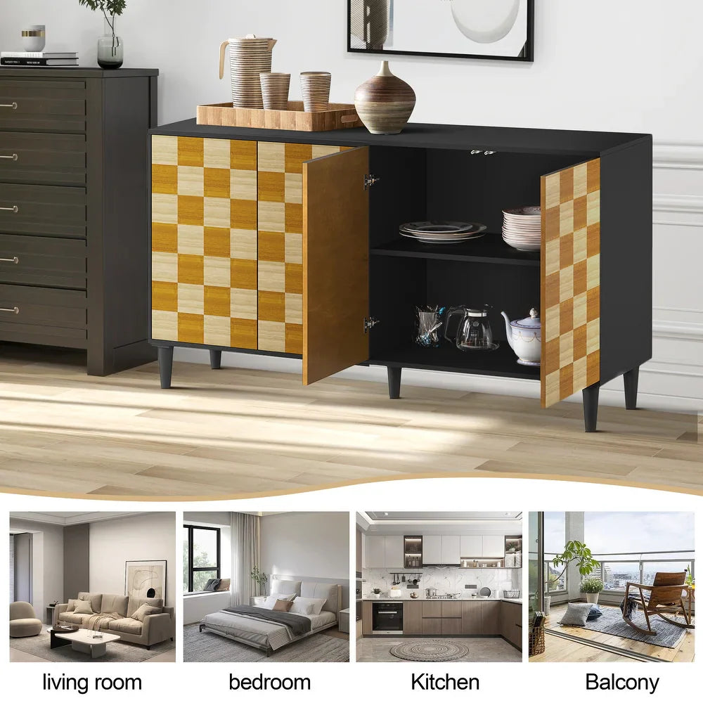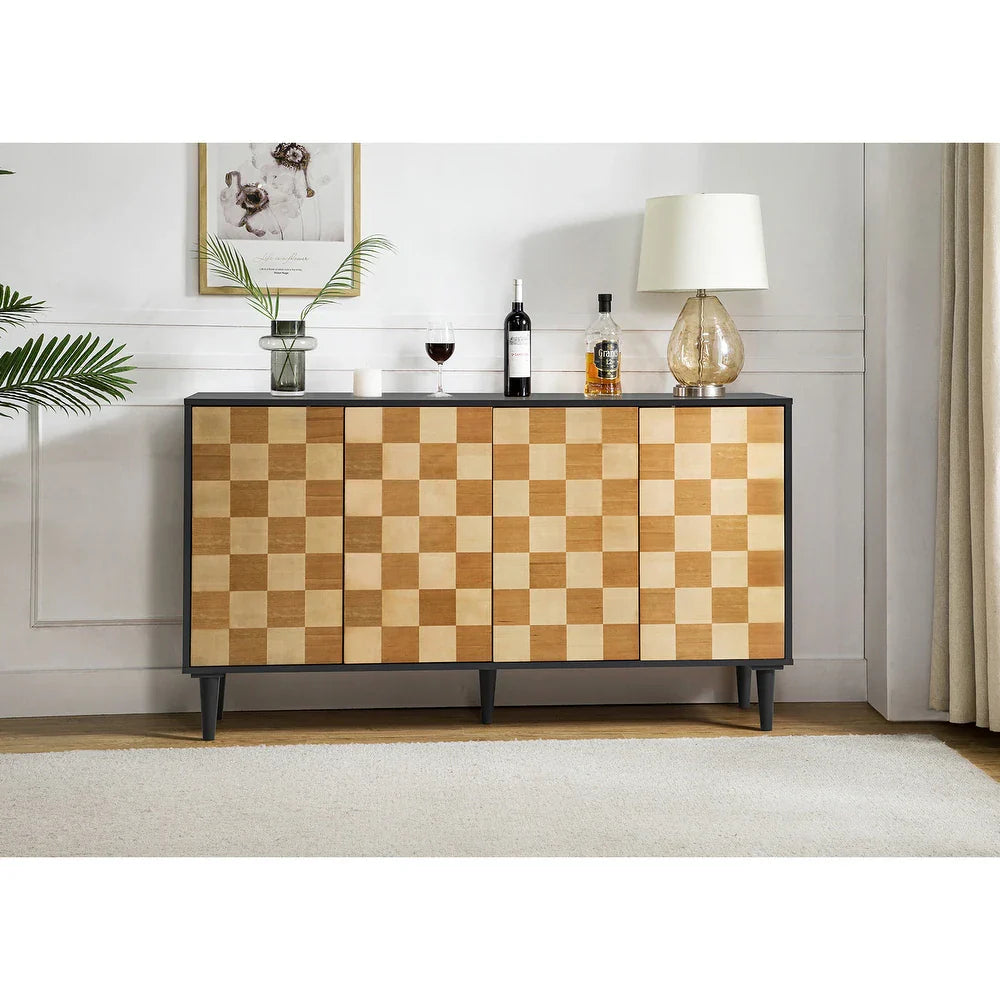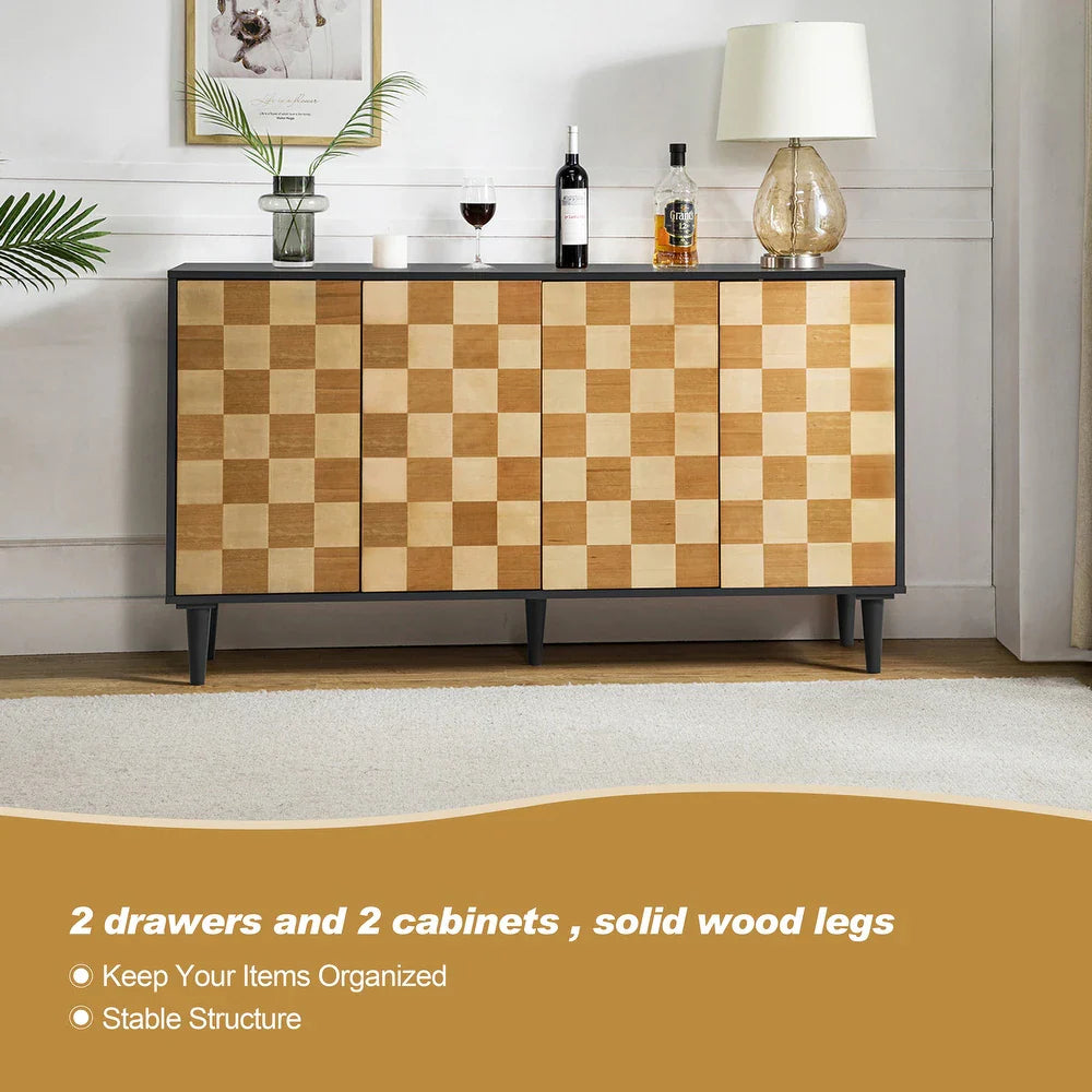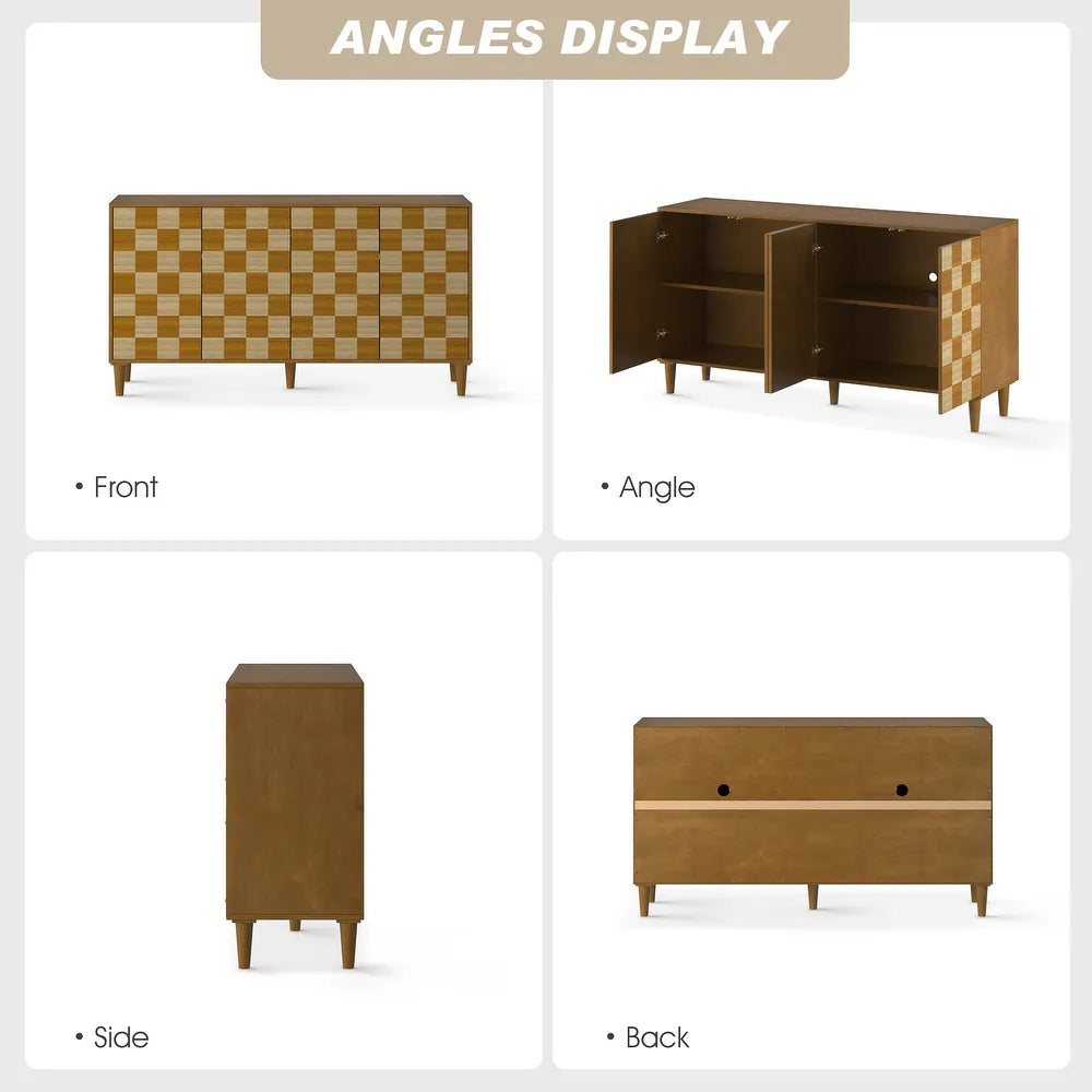 A combination of classic and up-to-date design, this sideboard maintains the casual feel of today's lifestyle. Its frame is made of manufactured wood with sleek lines and rich finishes showcasing craftsmanship, while the lattice design of the sideboard face proves its style. This sideboard has interior shelves for storing various sizes of essentials or miscellaneous items as needed, providing you with plenty of hidden storage space. Its legs are made of manufactured wood for durability. The legs come with adjustable pads that can be adjusted as needed to balance the sideboard. The sideboard can meet your various storage needs and is ideal as a way to decorate your living space. The simple design is suitable for a variety of styles of home decor,whether it's a kitchen, living room or balcony, bedroom, it's a great choice.