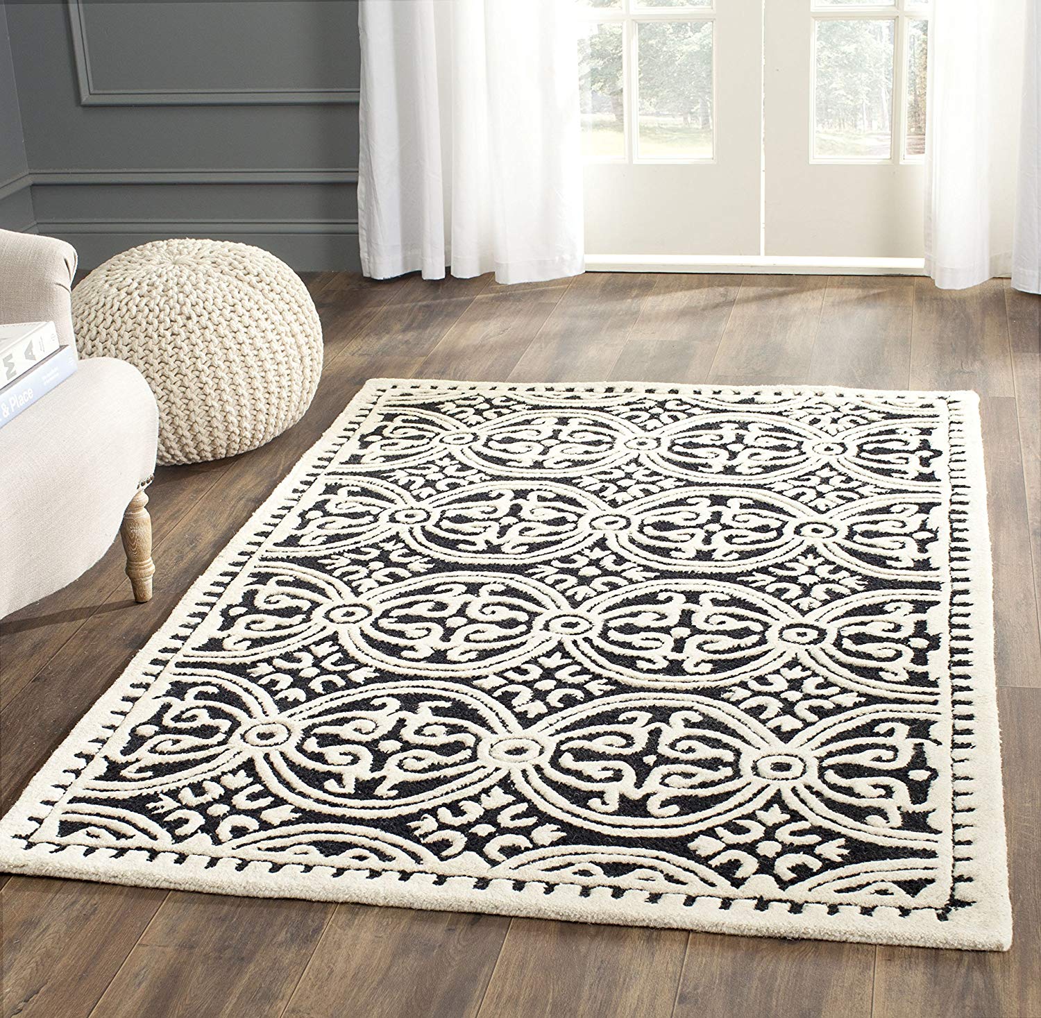 Handcrafted Geometric Black ivory Premium Wool Soft Area Rug