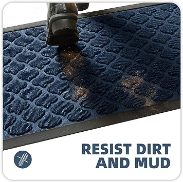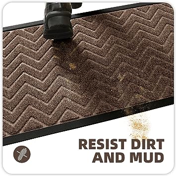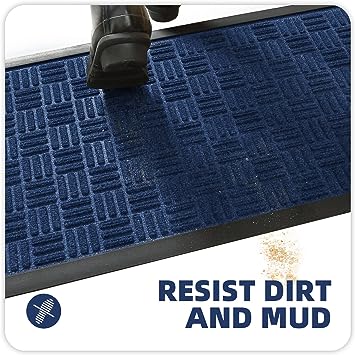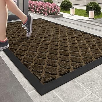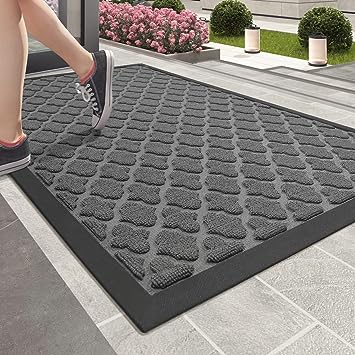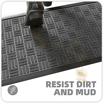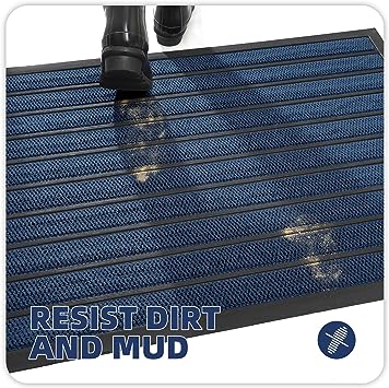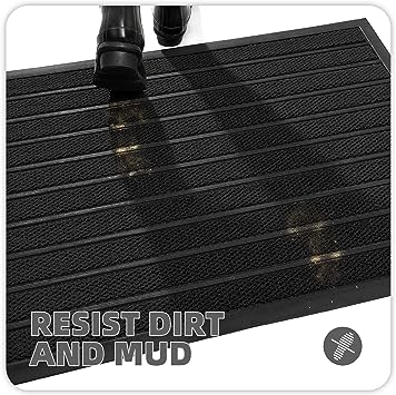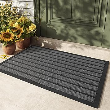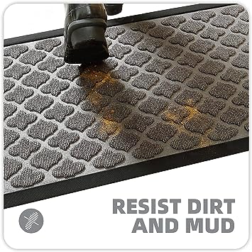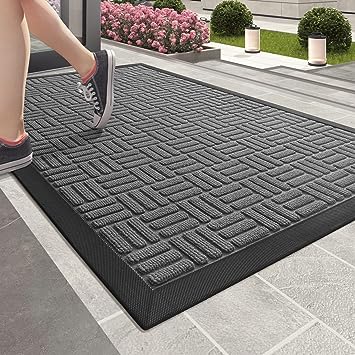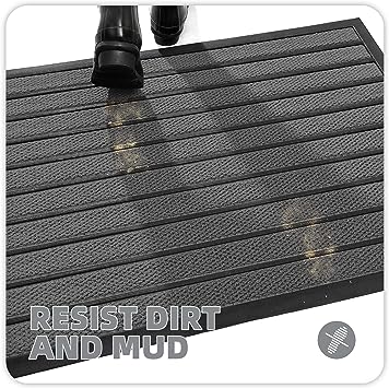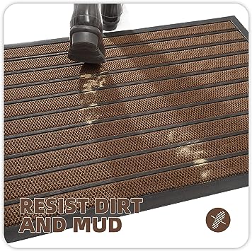 - 【Capture Dirt and Mud】 The surface of the outdoor door mat adopts a groove design with the pattern, forming a detention dam extending in all directions, helping to capture dirt, dust, gravel, mud, sand, grass or other messy debris and prevent them from entering the Indoor; The surface of floor mat beautifully woven polyester fabric absorbs moisture, and the durable oblique rubber edge will not accumulate water in rainy and snowy days, keeping your home dry and clean.