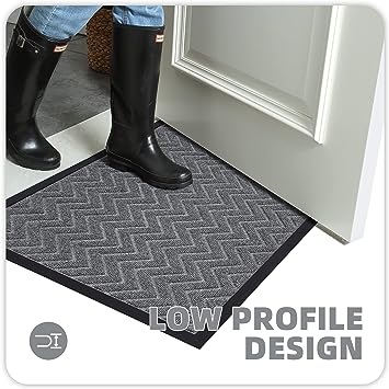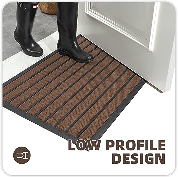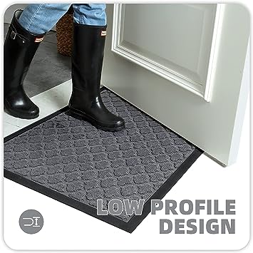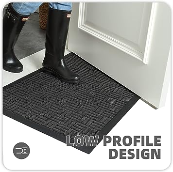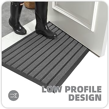 - 【Non-slip & Low Profile】 The backing of the indoor outdoor mat for the home entrance is constructed of high-quality rubber material. Non-Skid backing on dry floor, helping it to stay in place on your floor, so it won't slip or scuff floors. The low-profile design is ideal for low-clearance doors or entryways, preventing doors from getting stuck.