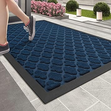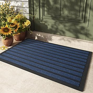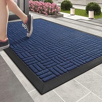 Heavy Duty Durable Outside Welcome Mat, Low Profile Non-Slip Entryway Rug for Home Entrance, Entry, Patio, Garage, High Traffic Area, 24"X48", Blue