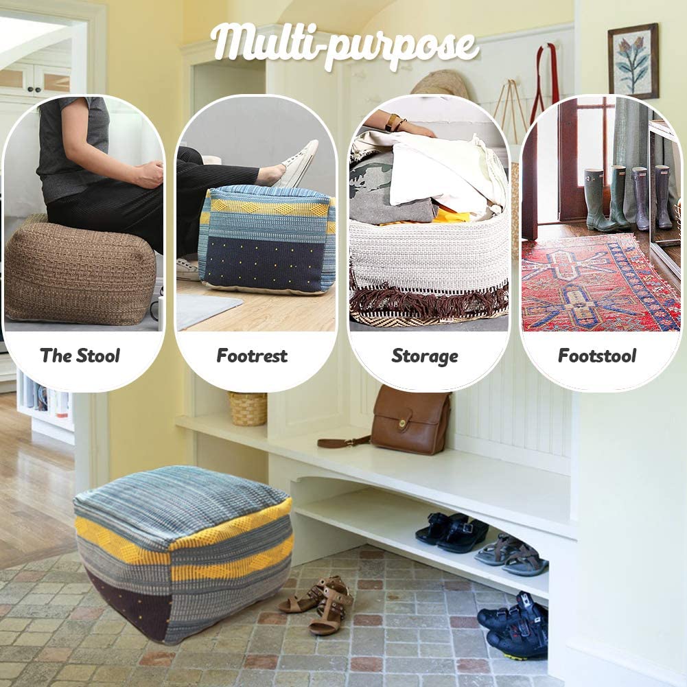 - BRAIDED HANDWOVEN MATERIAL: The pouf cover is braided handwoven fabric, comfortable and durable. This unstuffed pouf cover can serve as floor cushion seating, footrest, family tea time, living room decor, The square ottoman makes it fit in perfectly just about anywhere