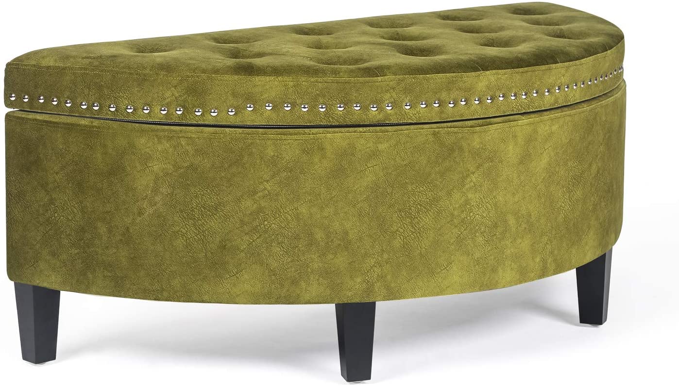 Storage Ottoman Bench Tufted Half Moon Bench for Entryway Living Room