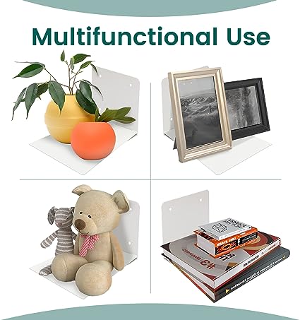 - DURABLE and Extra Large Size: Our metal floating bookshelves are made of strong steel with stainless steel coating, each floating bookshelf can support up to 22 lbs of books; Size: 6.38 x 6.89 x 4.84 inches, larger than our another 4-pack invisible bookshelves.