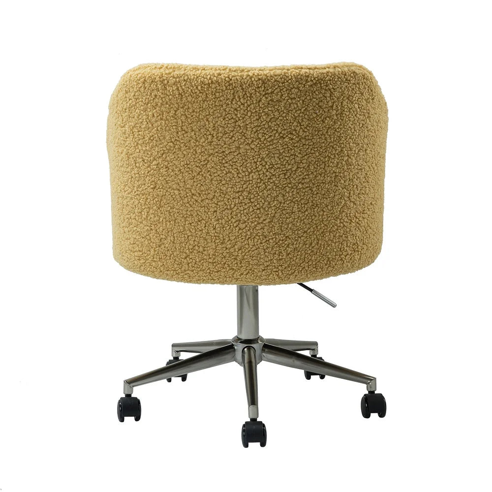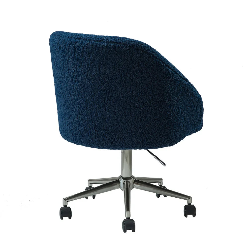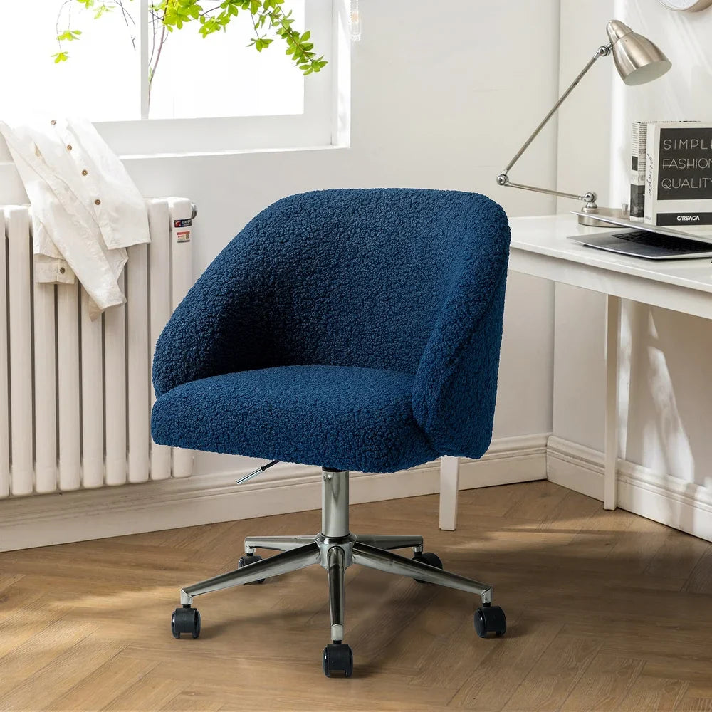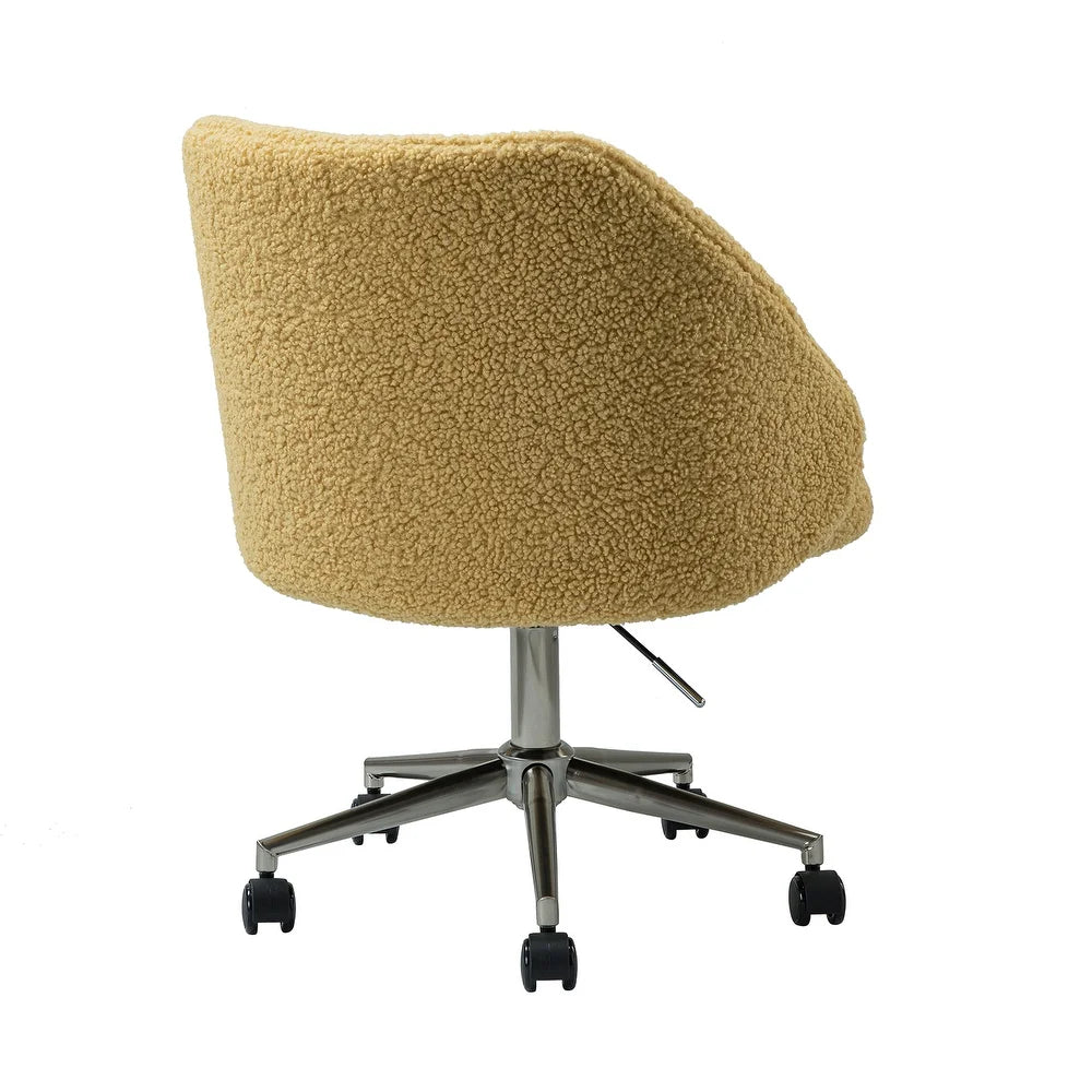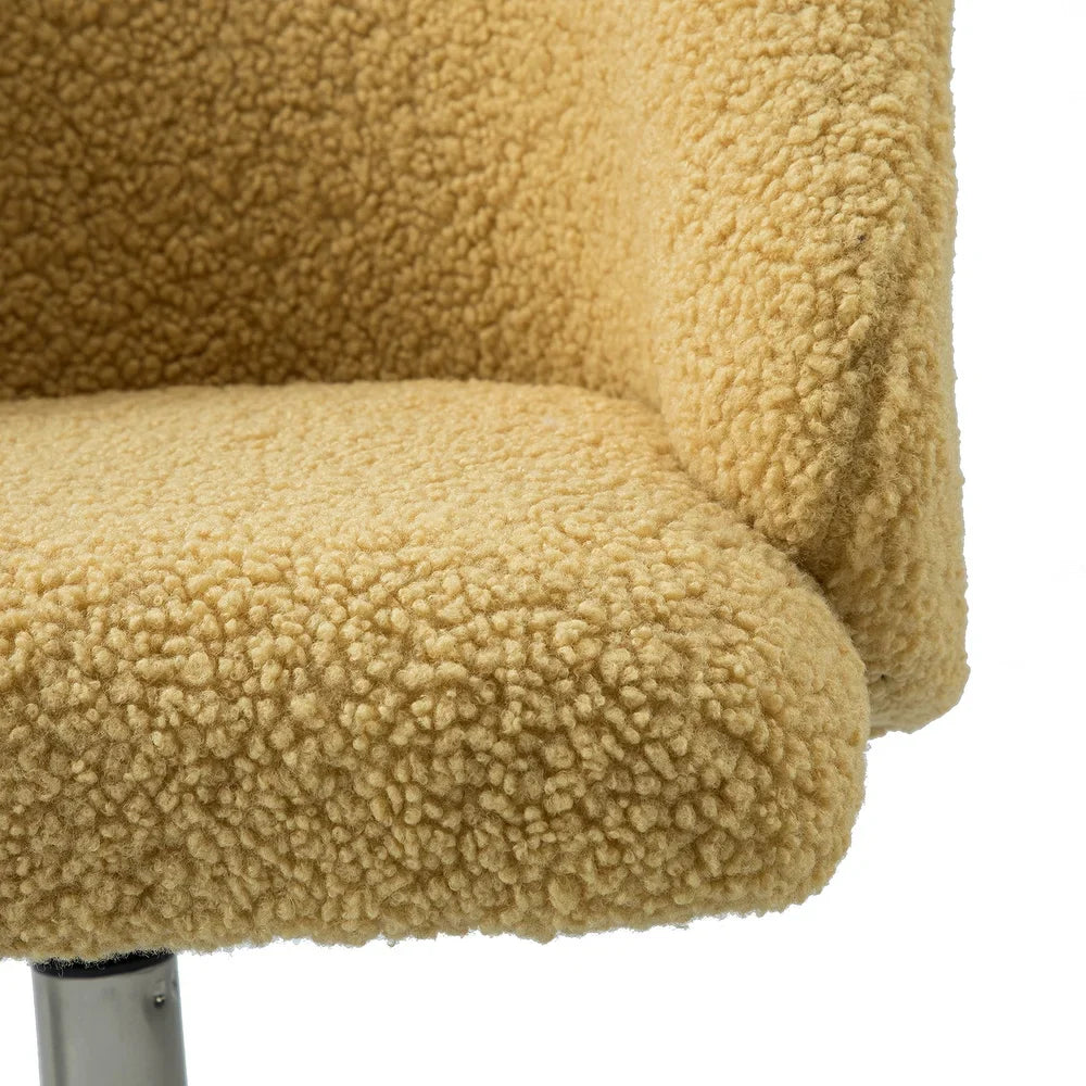 This ergonomically designed home office desk chair has a lot of functionality and modern style. Constructed with a durable golden iron frame and equipped with easy-to-move rolling wheels, this office chair can be adjusted in height and rotated 360 degrees to meet your needs and provide comfort and convenience. Filled with thick foam padding, this mid-century modern office chair offers just the right amount of comfort for when you need to take a break, while also boasting a trendy appearance. It is an ideal choice for any casual or professional offfice ,offering comfortable support with a design that prioritizes both comfort and convenience.