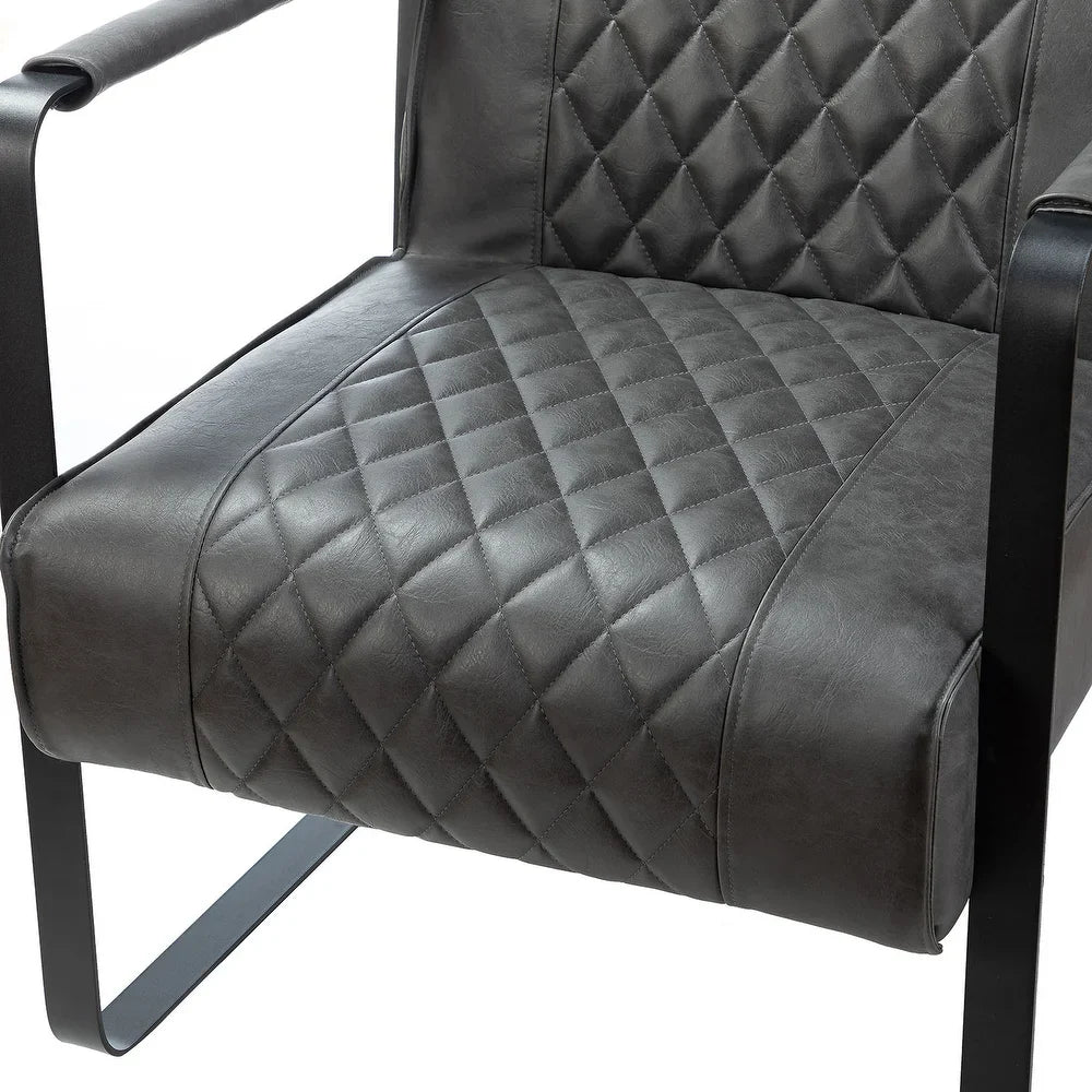 Experience the perfect combination of style and comfort with the 14 Karat Home Mid-Century Modern PU Leather Accent Armchair. This elegant chair features a tufted back and cushioned seat made of leather-like material for ultimate relaxation while you watch your favorite TV show or read a book. The chair's sleek black metal frame and faux leather-wrapped armrests offer a mid-century modern look that is sure to impress your guests. Whether you place it in your living room, dining room, or office, this accent chair is perfect for any modern interior decor.