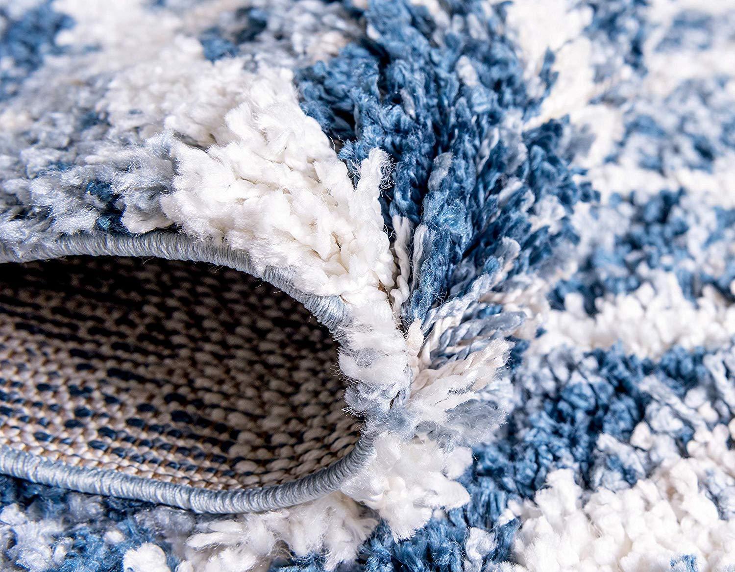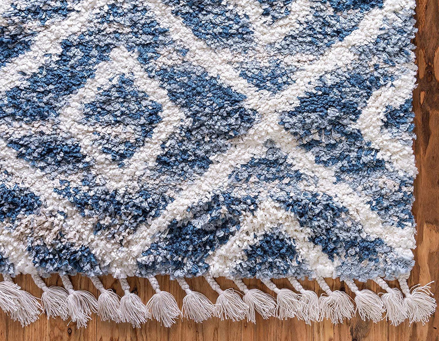 Lattice Tassel Blue Ivory Beige Plush Shag Area Rugs