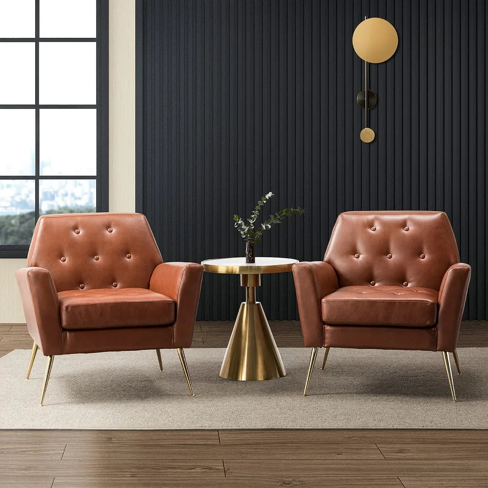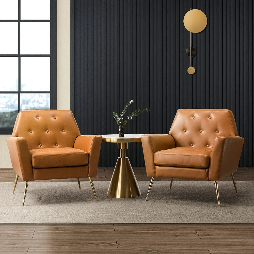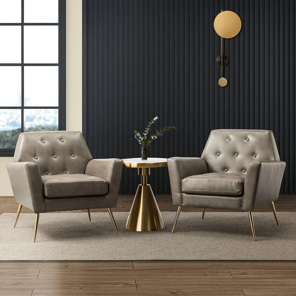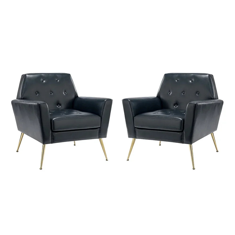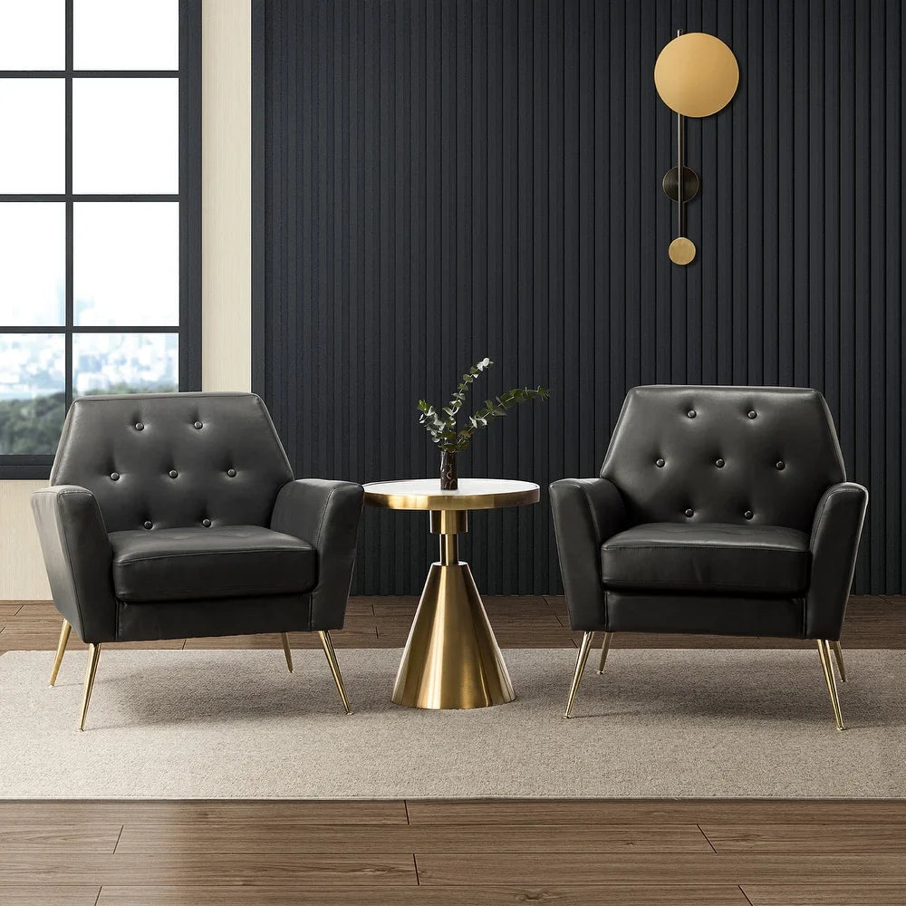 Lilia Classic Leather Button-Tufted Arm Chair with Gold Metal Legs Set of 2