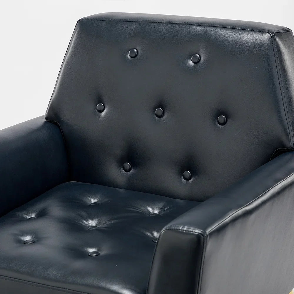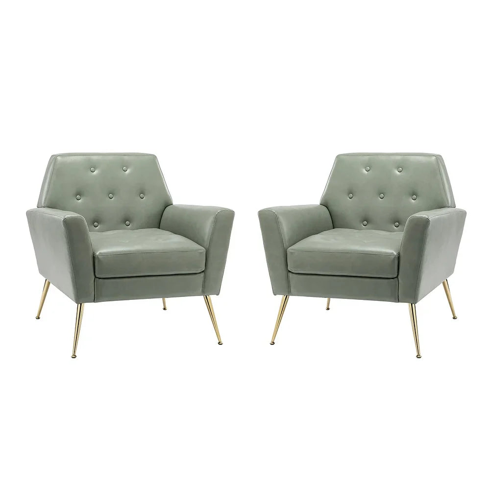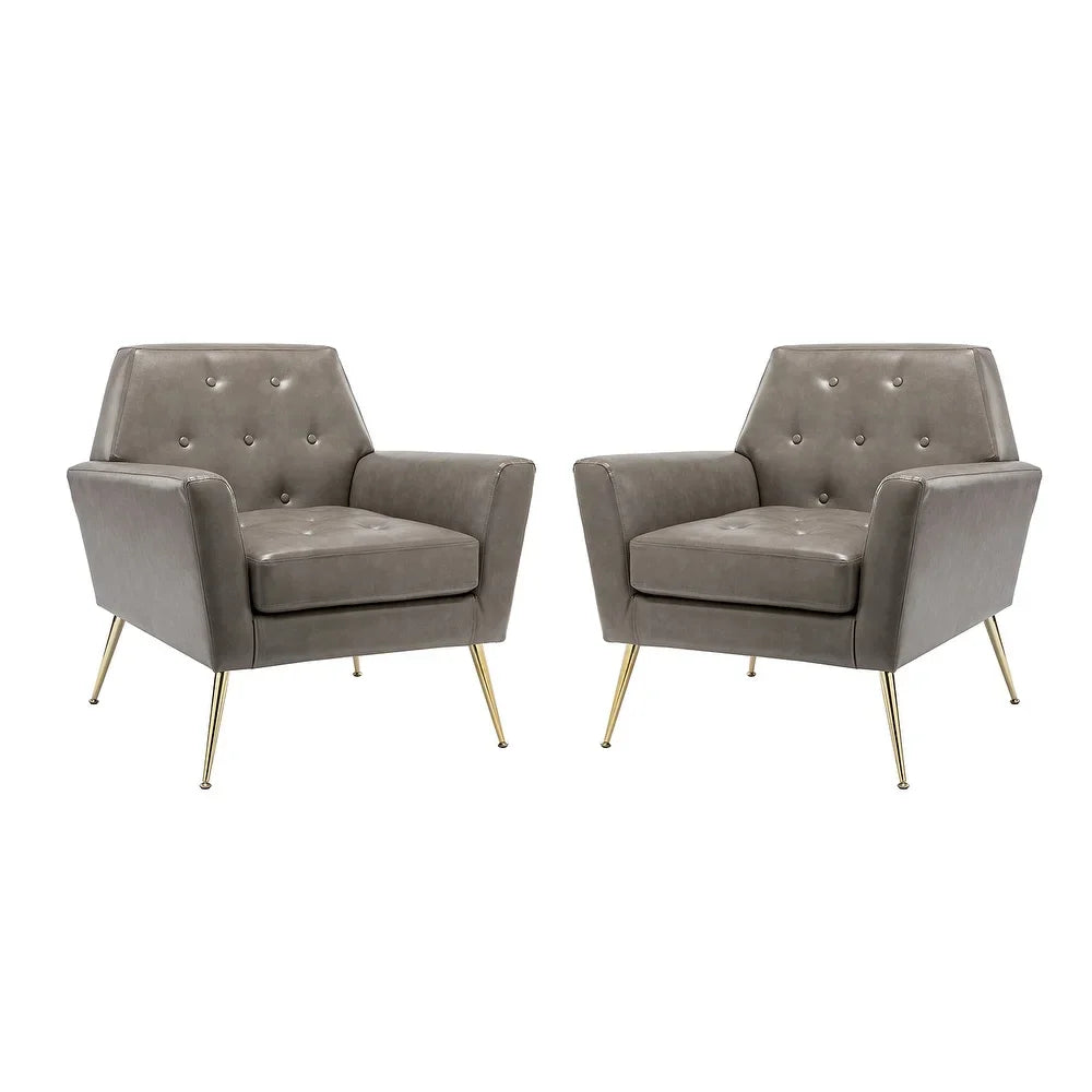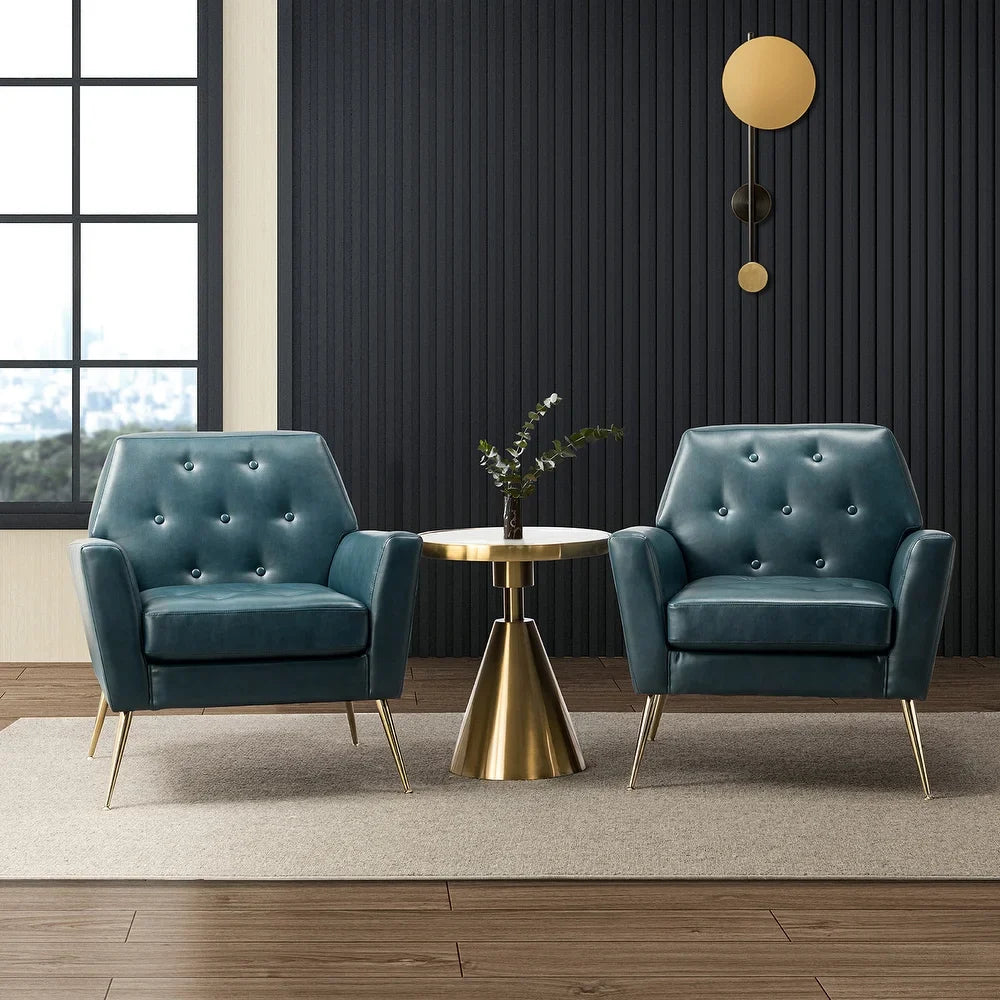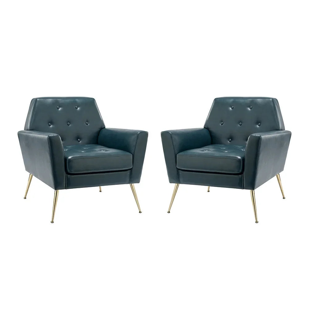 Lilia Classic Leather Button-Tufted Arm Chair with Gold Metal Legs Set of 2