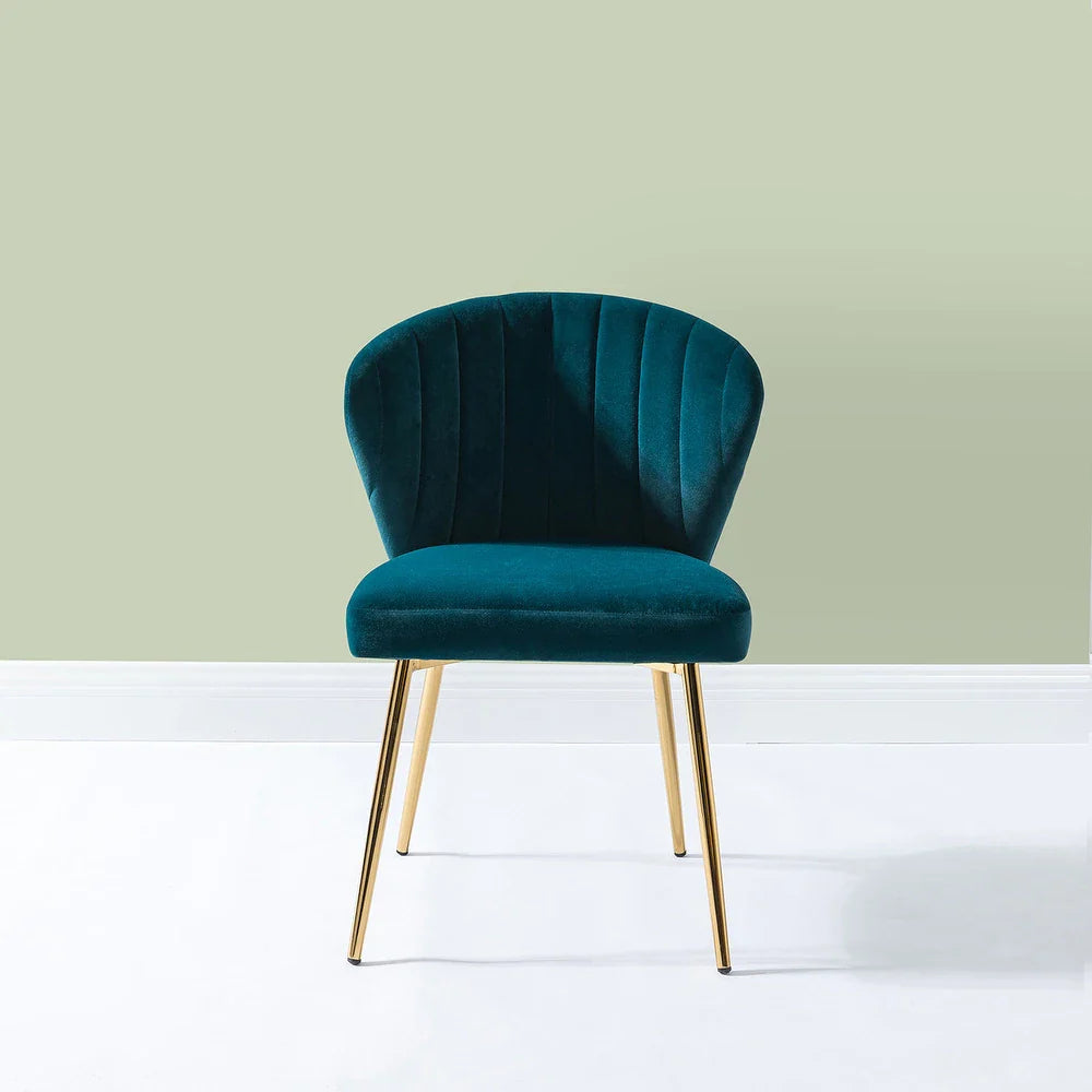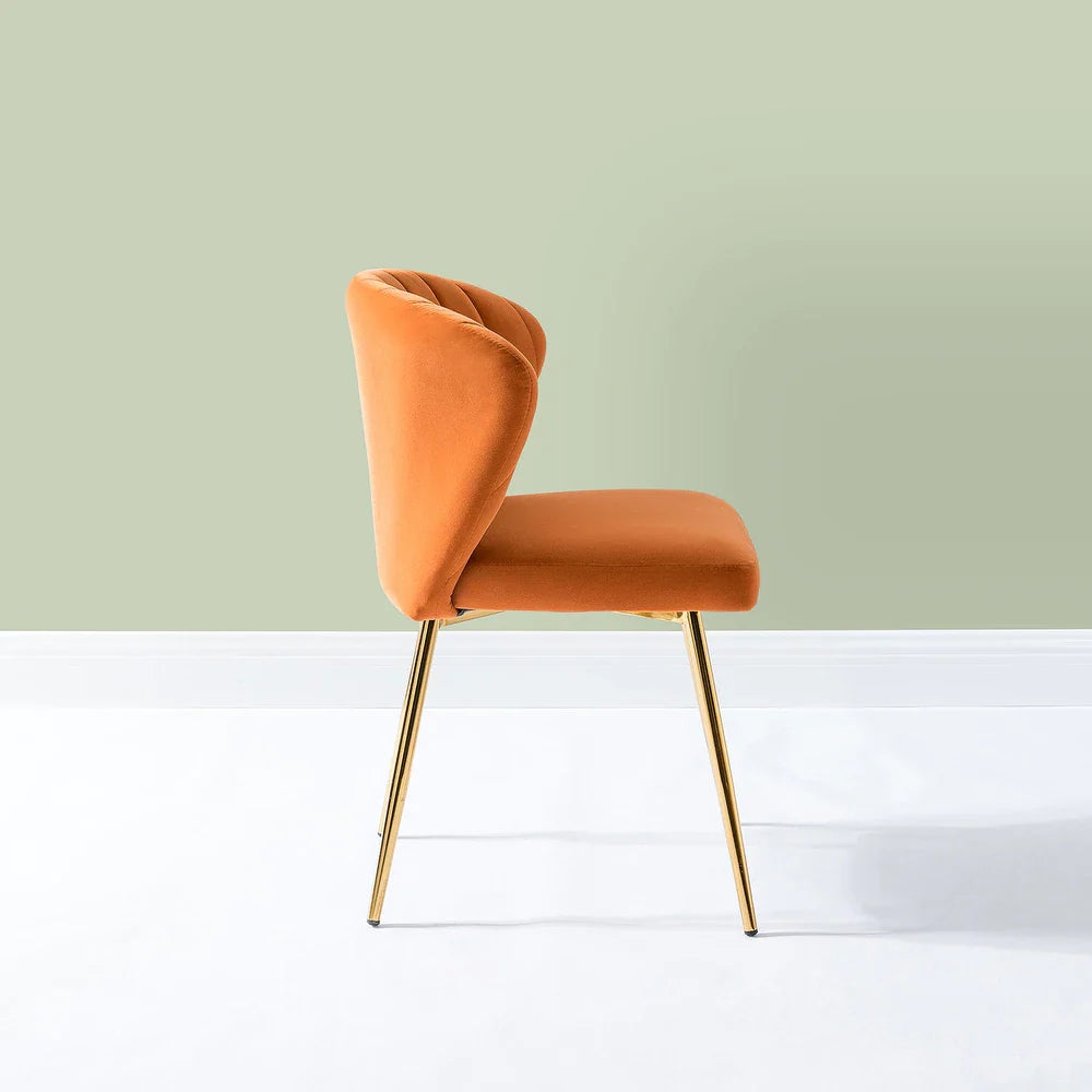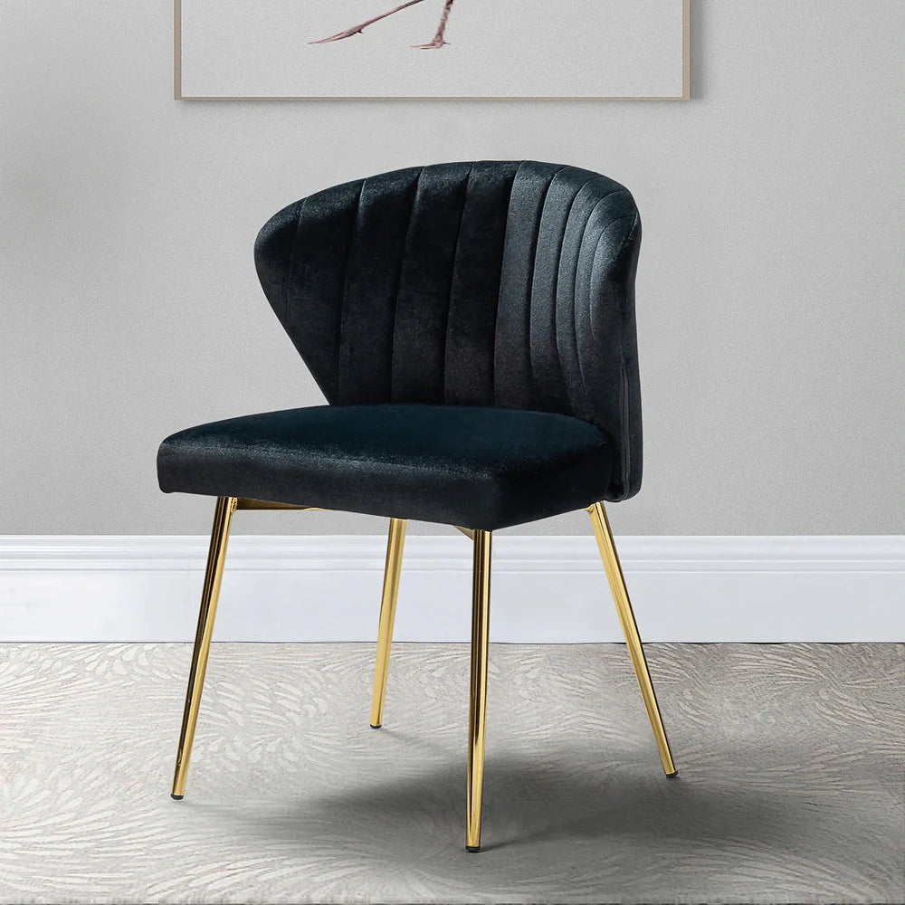 Add a touch of sophistication to your home with the HULALA HOME Upholstered Tufted Back Side Accent Dining Chair with Small Base. The channel-tufted back and foam-filled cushion provide exceptional comfort while the velvet upholstery adds to the chair's timeless and long-lasting appeal. The chair's four metal legs offer both stability and durability. Perfect for the dining room or as an accent chair in your bedroom or living space, this chair is the ideal choice for anyone looking to elevate their home decor.