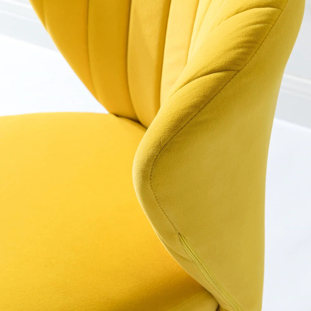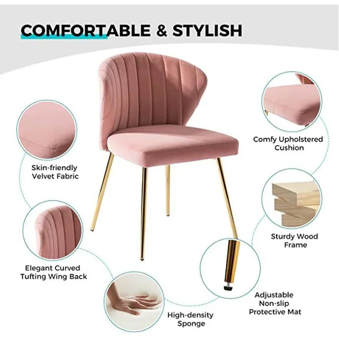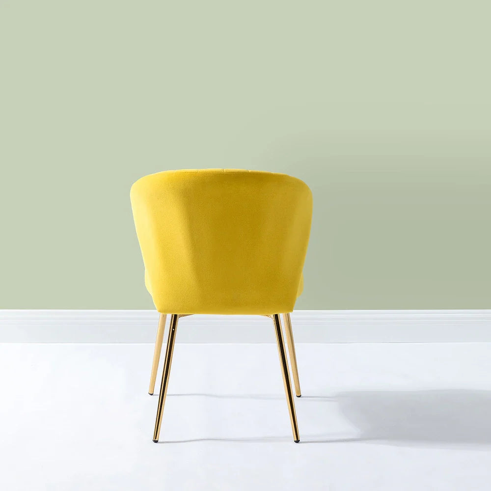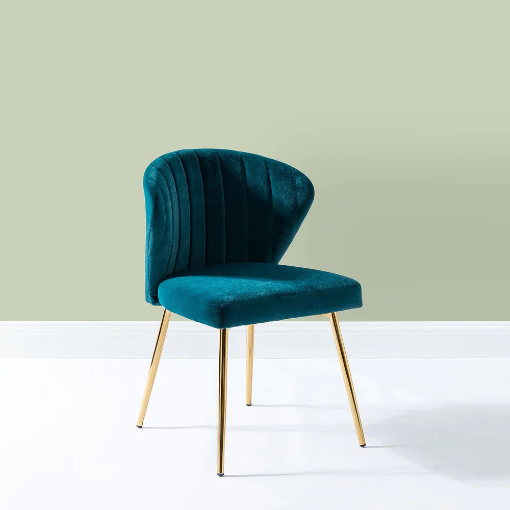 Add a touch of sophistication to your home with the HULALA HOME Upholstered Tufted Back Side Accent Dining Chair with Small Base. The channel-tufted back and foam-filled cushion provide exceptional comfort while the velvet upholstery adds to the chair's timeless and long-lasting appeal. The chair's four metal legs offer both stability and durability. Perfect for the dining room or as an accent chair in your bedroom or living space, this chair is the ideal choice for anyone looking to elevate their home decor.
