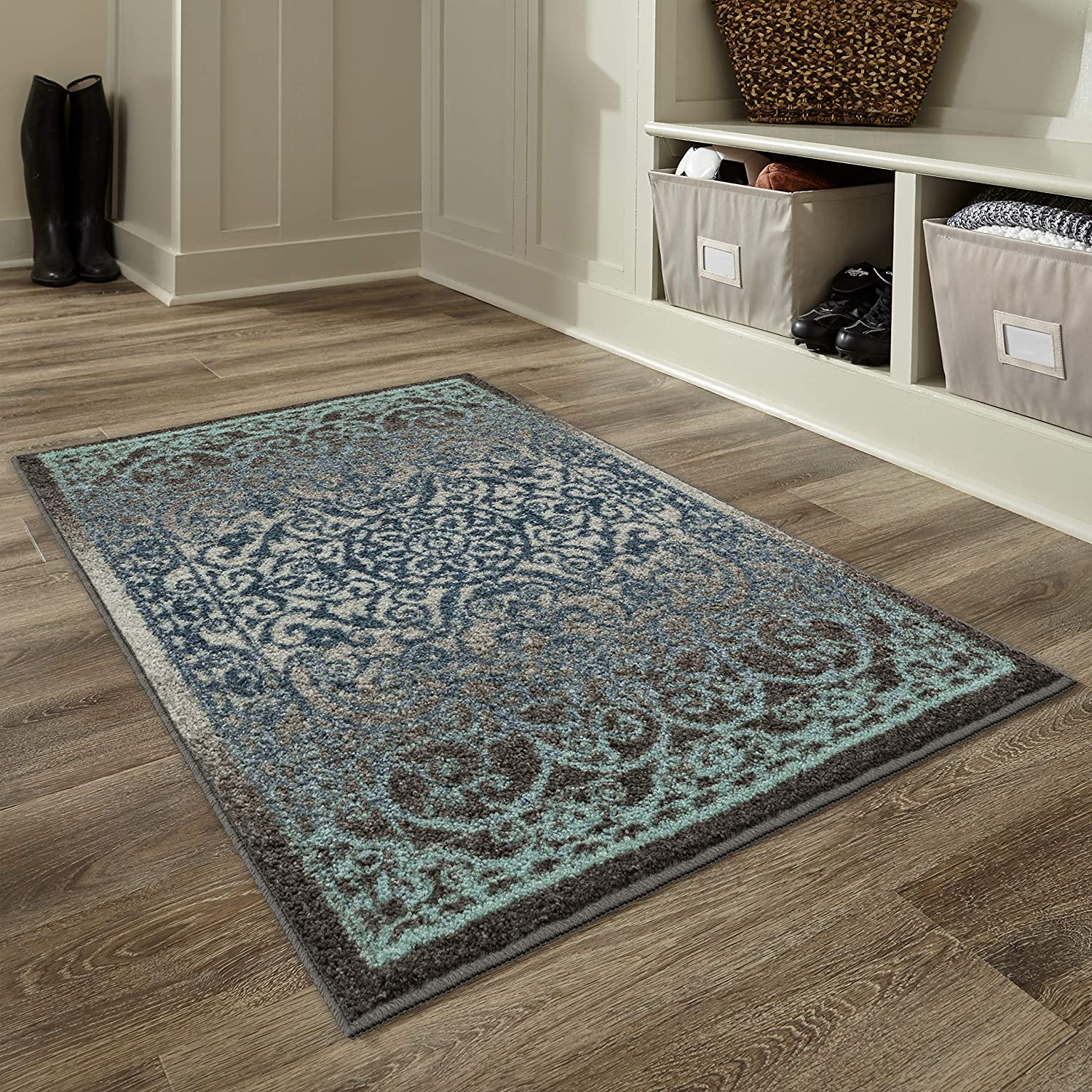 Maples Rugs Pelham Vintage Kitchen Rugs Non Skid Charcoal/Radiant Blue