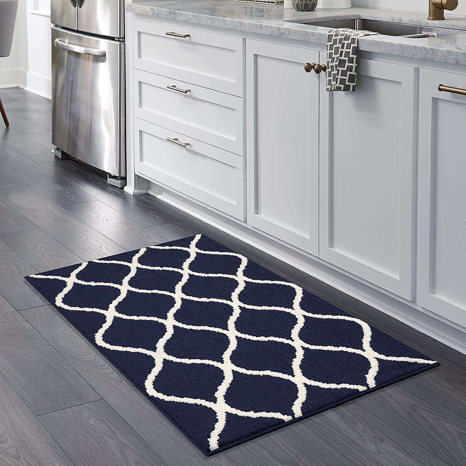 Maples Rugs Rebecca Contemporary Runner Rug Non Slip Navy Blue/White