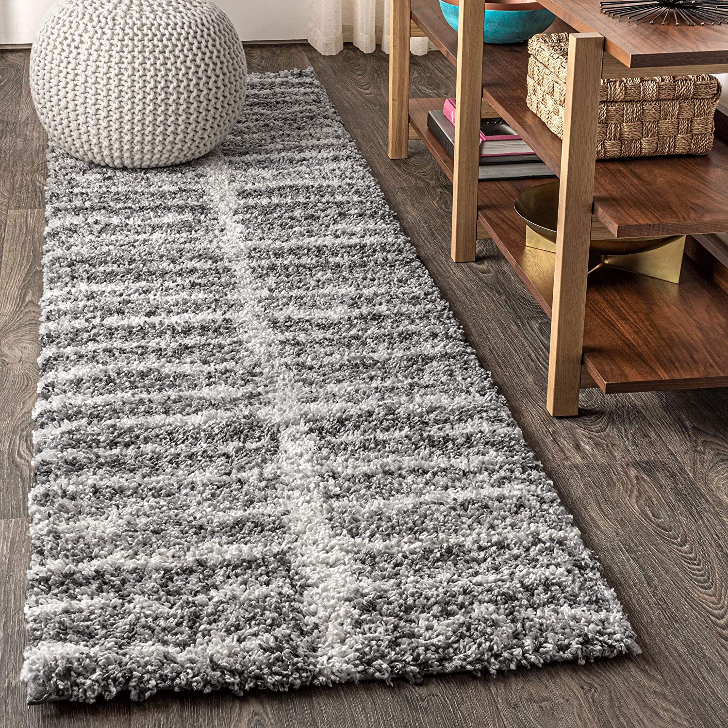 Merida Stacked Grid Shag Grey/Ivory Soft Area Rug