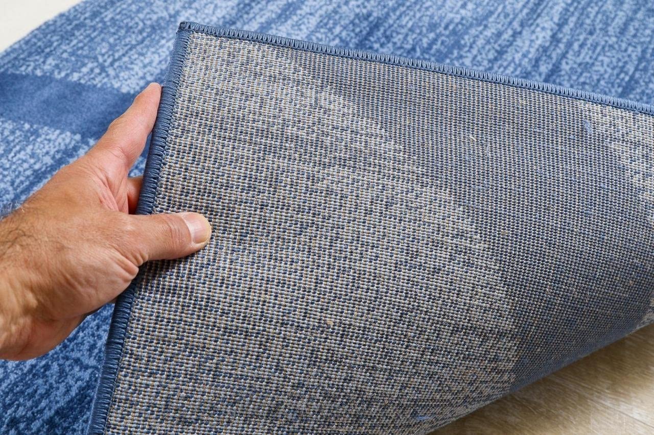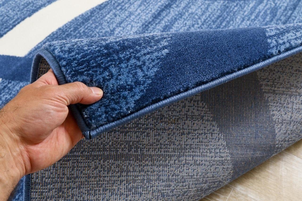 Modern Abstract Circles Blue Ivory Soft Area Rug