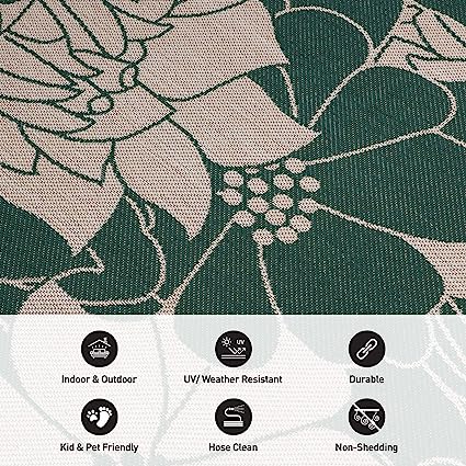 - Low profile flat weave weather resistant construction.Stain Resistant, fade Resistant and no shedding,easy to clean and maintain.