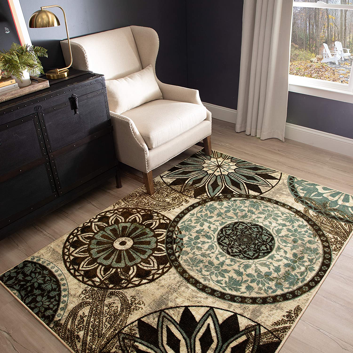 Medallion Area Rugs Blue Brown Light Multi-color