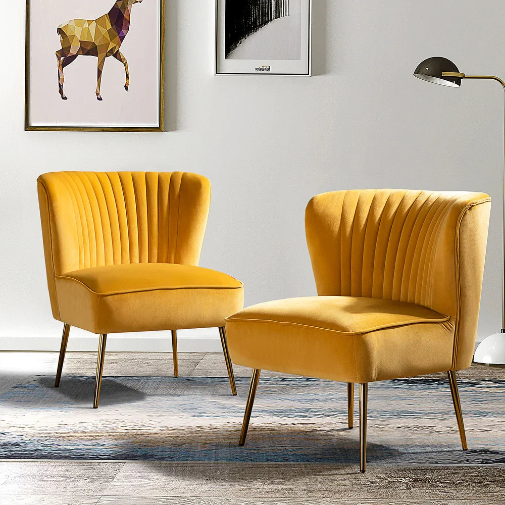 Looking for a chair that combines comfort and style? Look no further than the 14 Karat Home Upholstered Modern Tufted Side Chair with Gold Legs Set of 2. This accent chair features a channel-tufted backrest and is made from high-quality velvet fabric, providing a comfortable touch. The chair's armless design allows for plenty of elbow room, making it a great addition to any living room, office, or den. The sturdy wood frame and high-density foam padding provide both comfort and support, while polished gold metal legs add a modern industrial feel. Assembly is required, and shipping is prompt with excellent after-sale service.