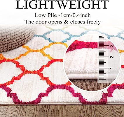 - SOFT & COMFORTABLE SURFACE - 0.4" height pile provides soft and comfortable touch that pets and kids will love to move around on the moroccan rug. Throw rugs are perfect plush addition to your favorite space. Either standing or sitting, it can relieve fatigue.