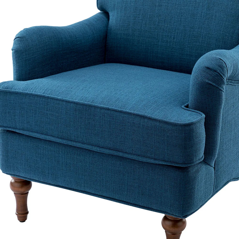 Whether catching your favorite shows after a long day or kicking back with the latest bestseller on your day off, this transitional armchair offers the perfect perching point in your home. Built on a sturdy manufactured wood frame, it shows a perfect combination of sturdy structure and extreme comfort. With textured polyester fabric, the seat cushion is filled with thick foam and the back cushion is filled with soft silk wadding for ultimate comfort, while solid wood legs ensure reliable durability and high quality, suitable for all kinds of styles. This classic armchair with tasteful carved legs and wingback is a perfect choice for your living room, bedroom, or any place you want.