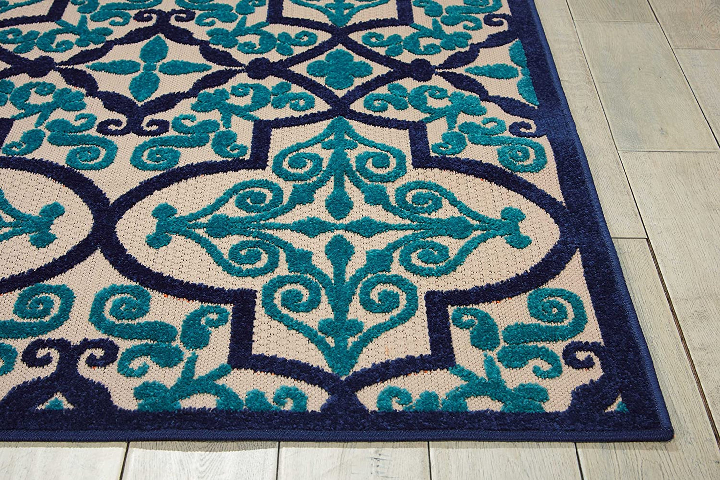 Aloha Indoor Outdoor Navy Aqua Moroccan Area Rug
