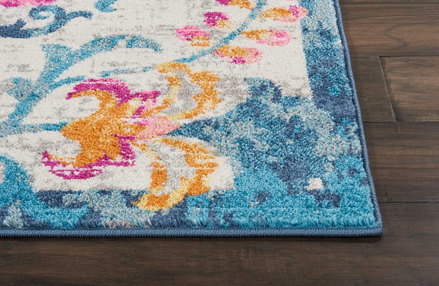 Passion Floral Ivory Blue Fuchsia Soft Area Rug