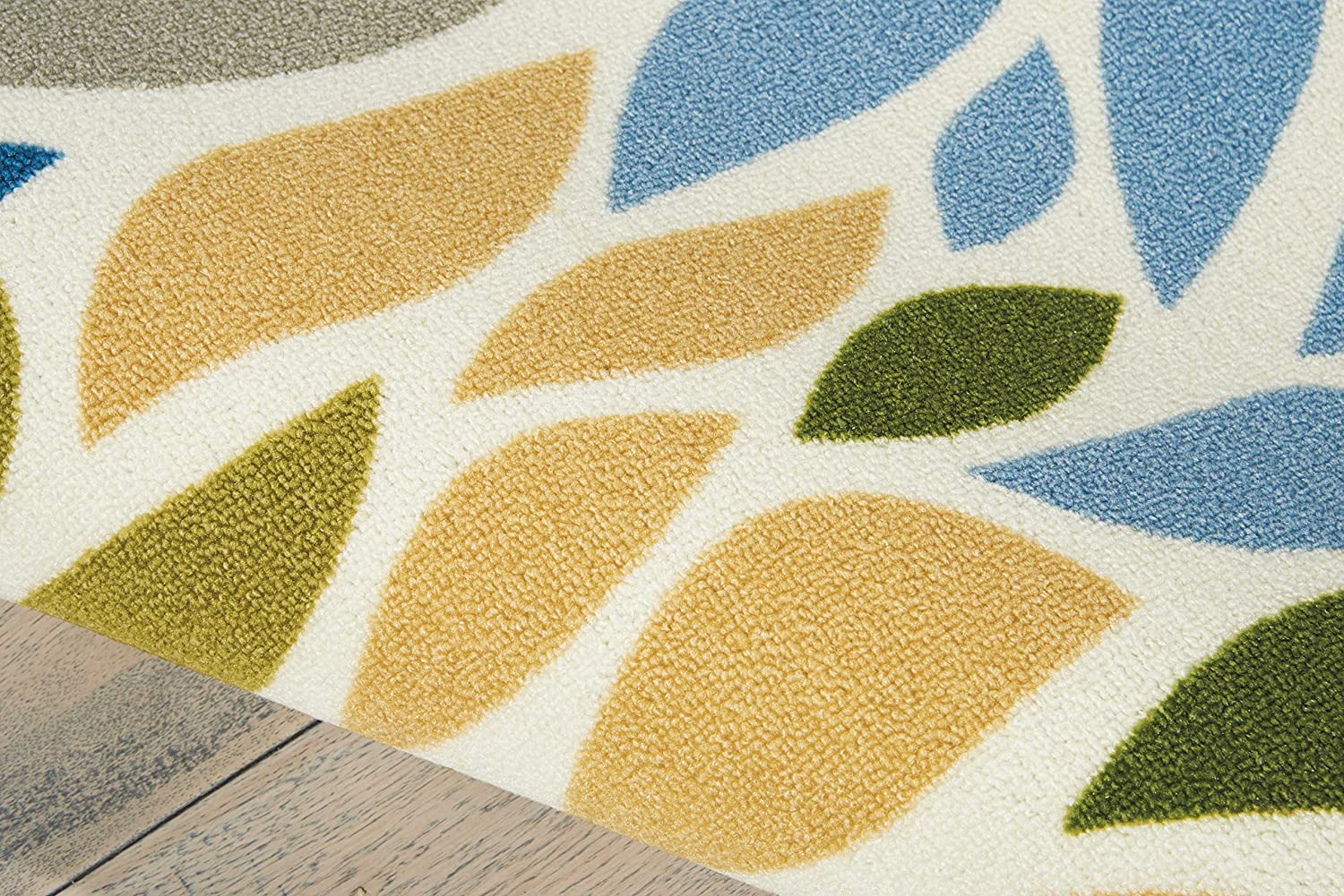 This easy-to-maintain, wonderfully-textured Home and Garden indoor/outdoor area rug features playful charcoal and blue pop art leaves cascading across a bone background for a fresh and fanciful effect certain to uplift any environment.