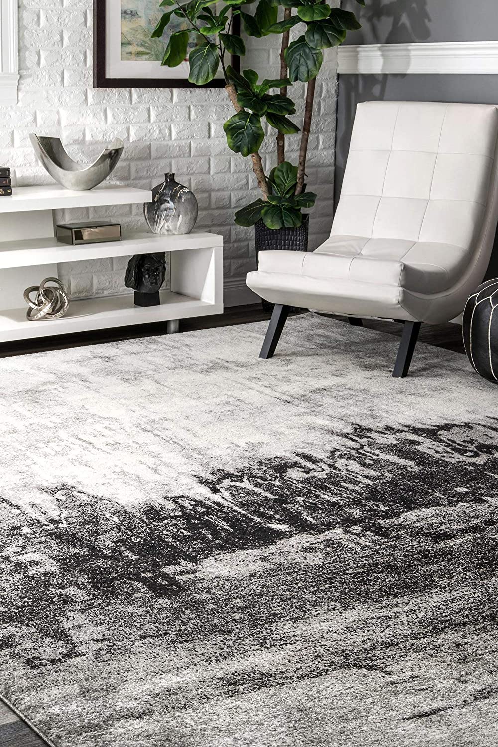 Contemporary Abstract Area Black Grey Soft Rug