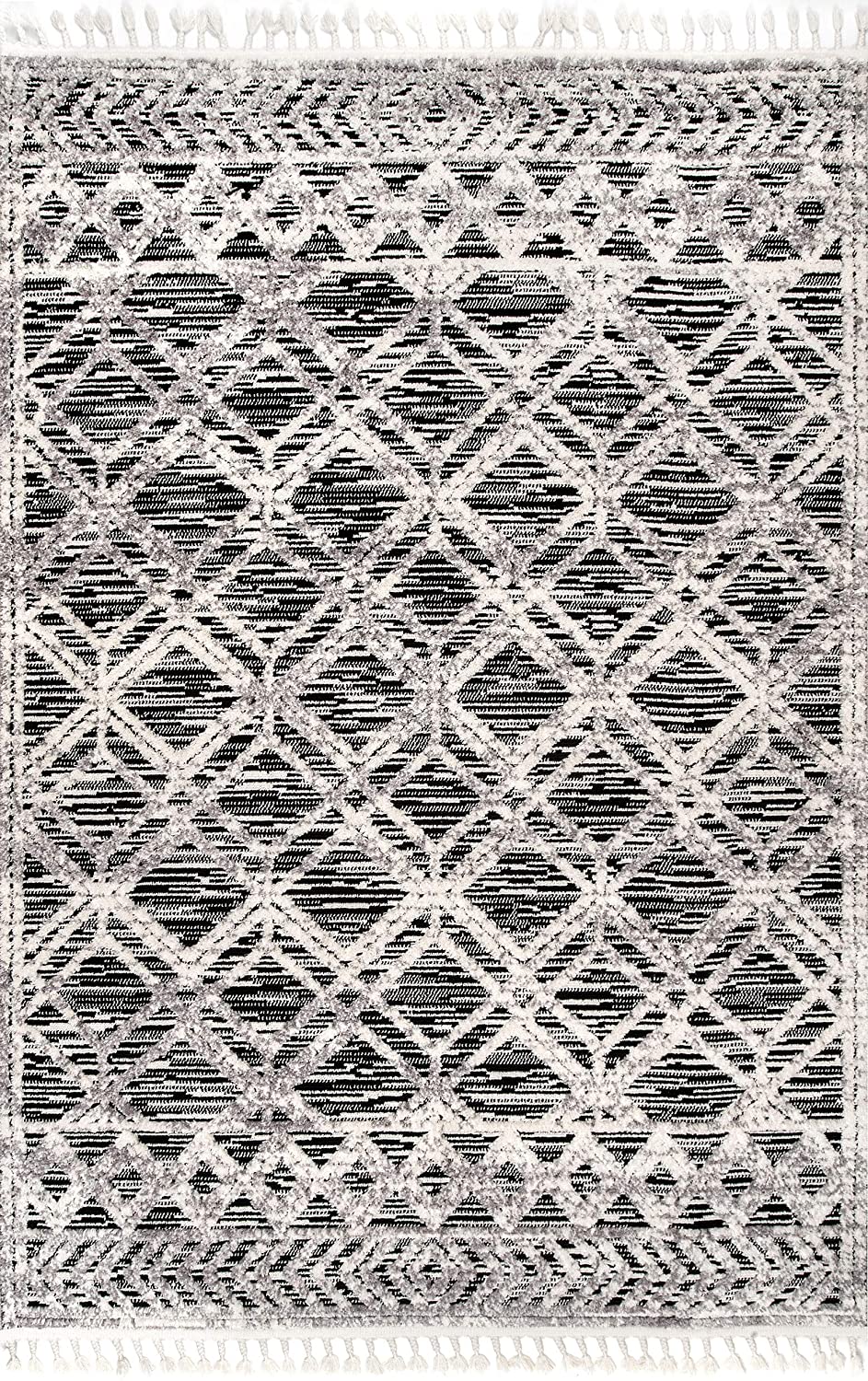 Ansley Soft Lattice Textured Tassel Runner Rug Grey