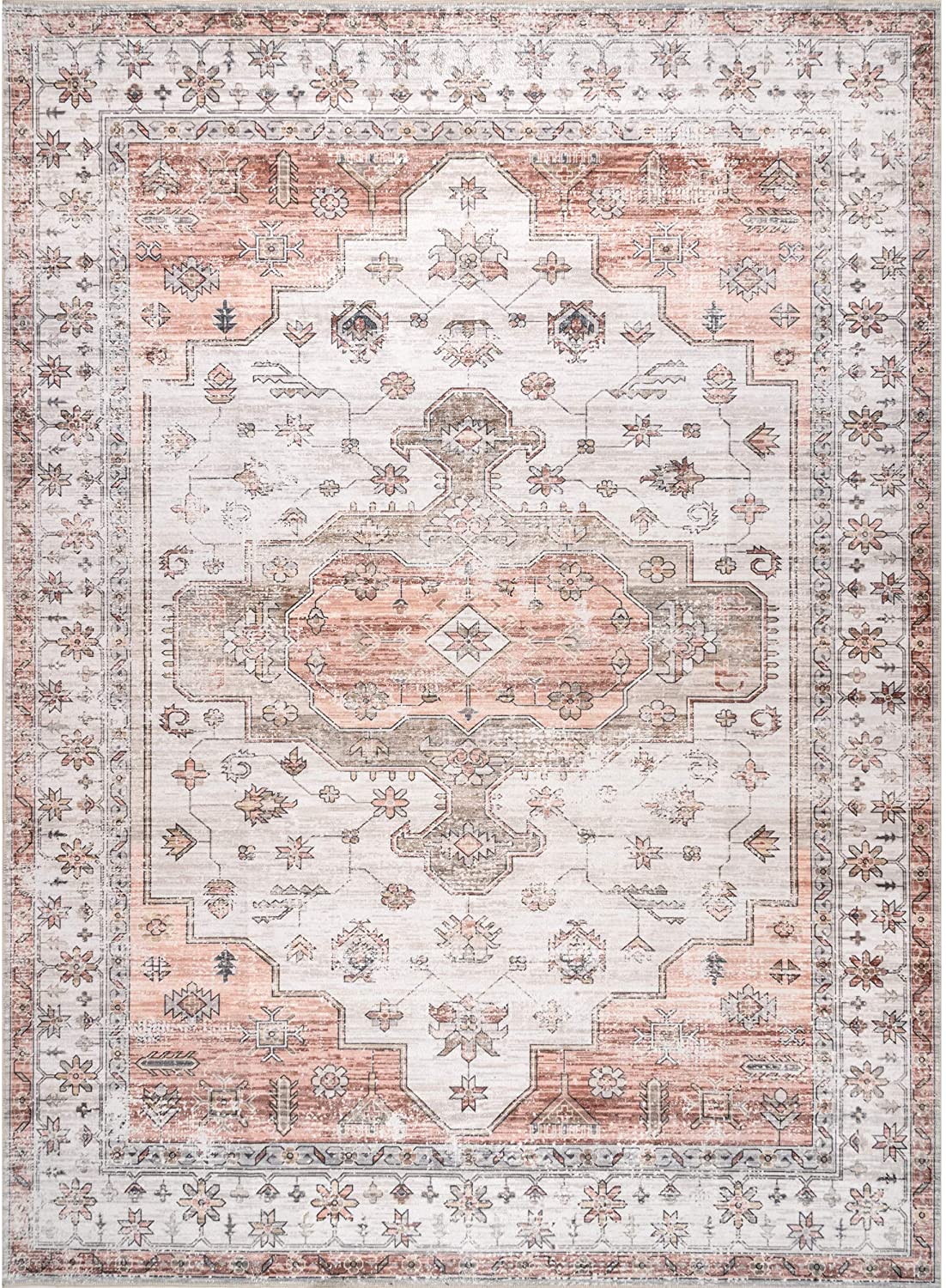 Banks Machine Washable Faded Vintage Area Rug Beige